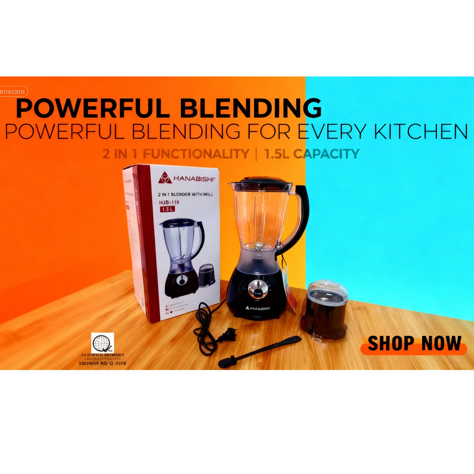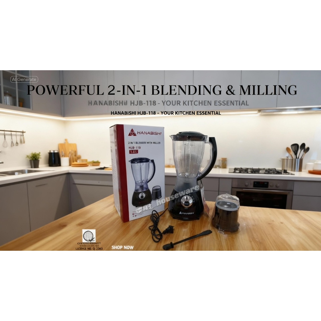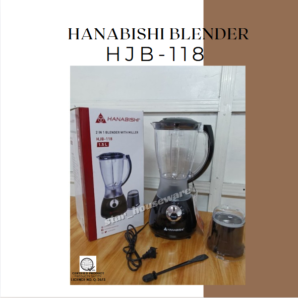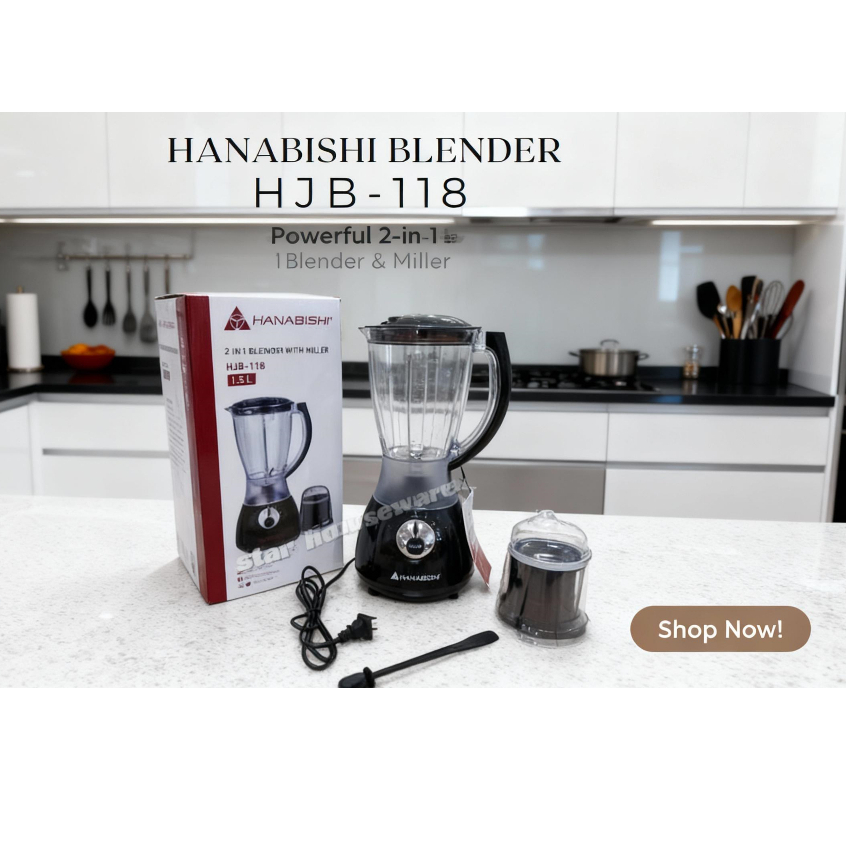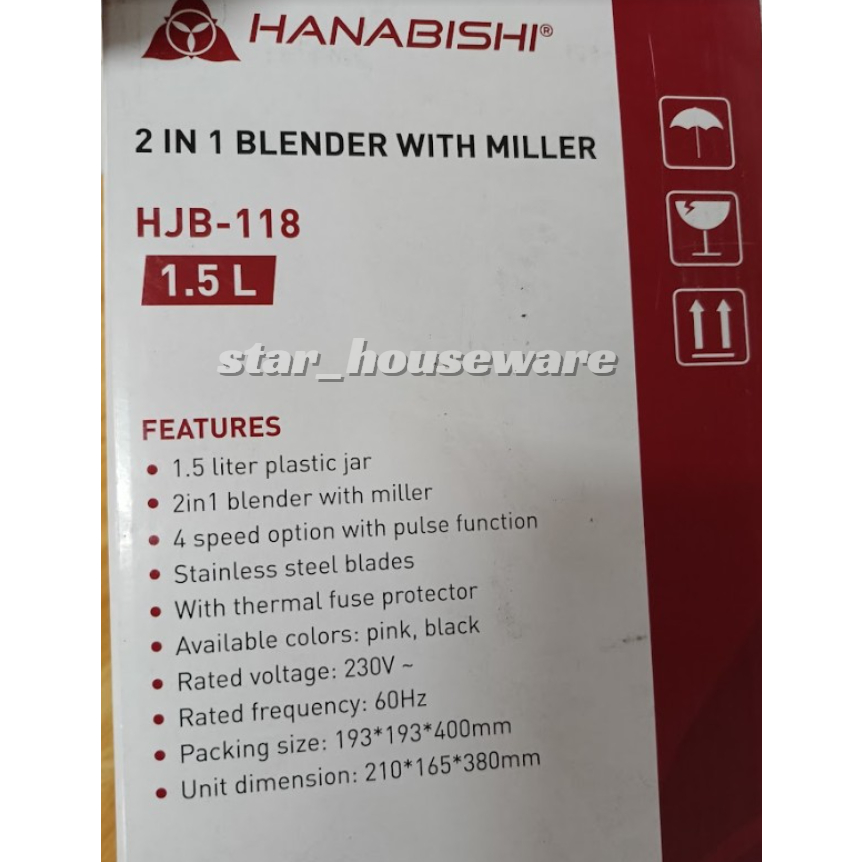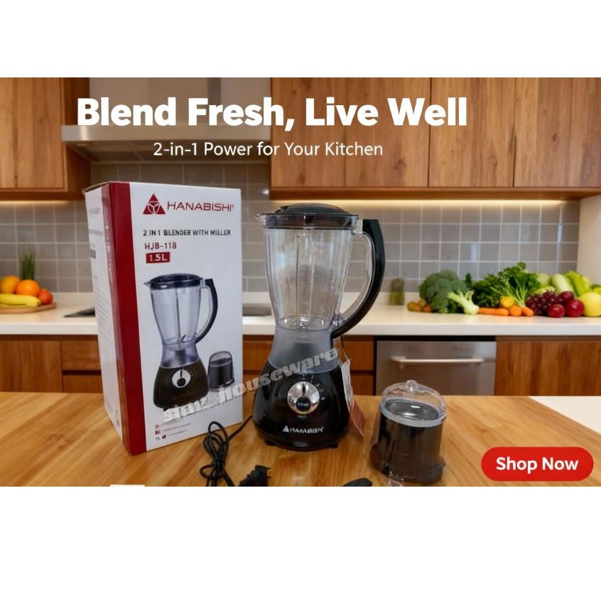 HANABISHI 2 in 1 Juice Blender with Miller 1.5L Best for Shakes and Smoothies HJB-118