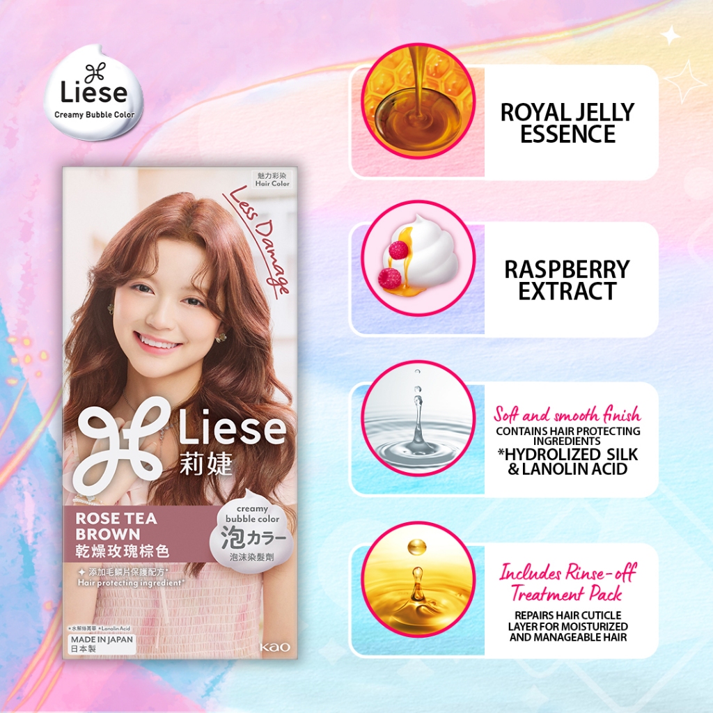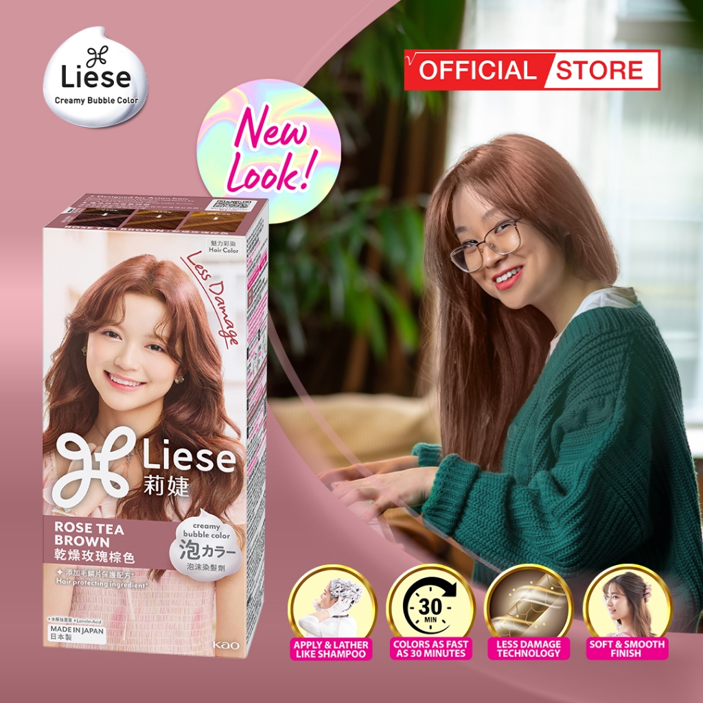 Liese Creamy Bubble Hair Color (Rose Tea Brown) – Mess-Free DIY Hair Dye for Natural Look