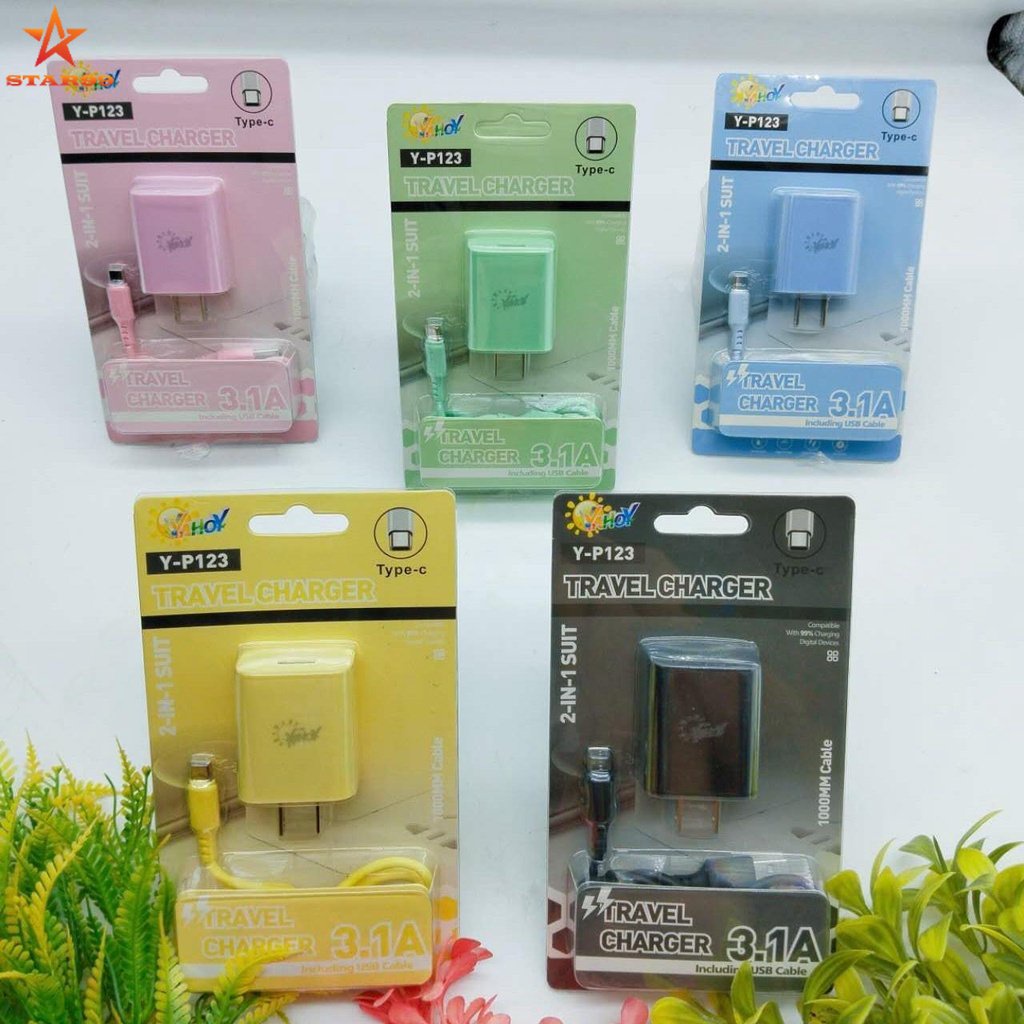 Set Colorful 3.1A Fast Charger Macaron Adapter Fast Charge for /Android/Type-C iPhone+Free Data Cabl