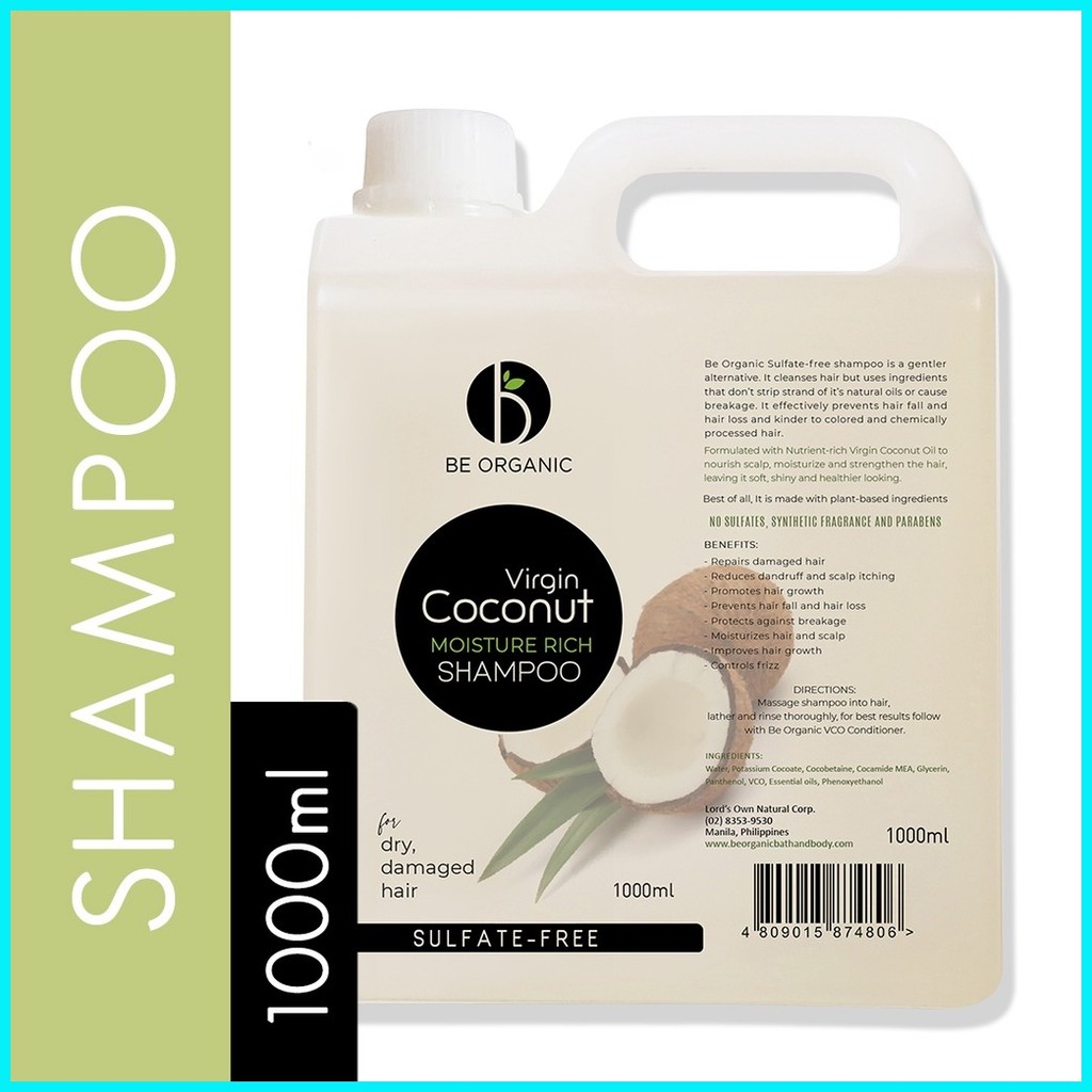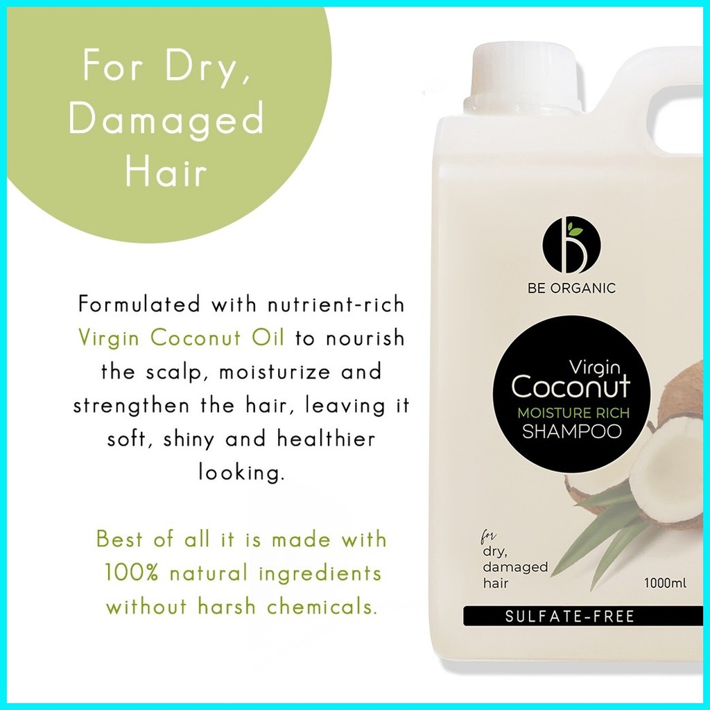 Be Organic Sulfate-free VCO Shampoo 1000ML Refill (Moisture Boost For Dry & Damaged Hair)