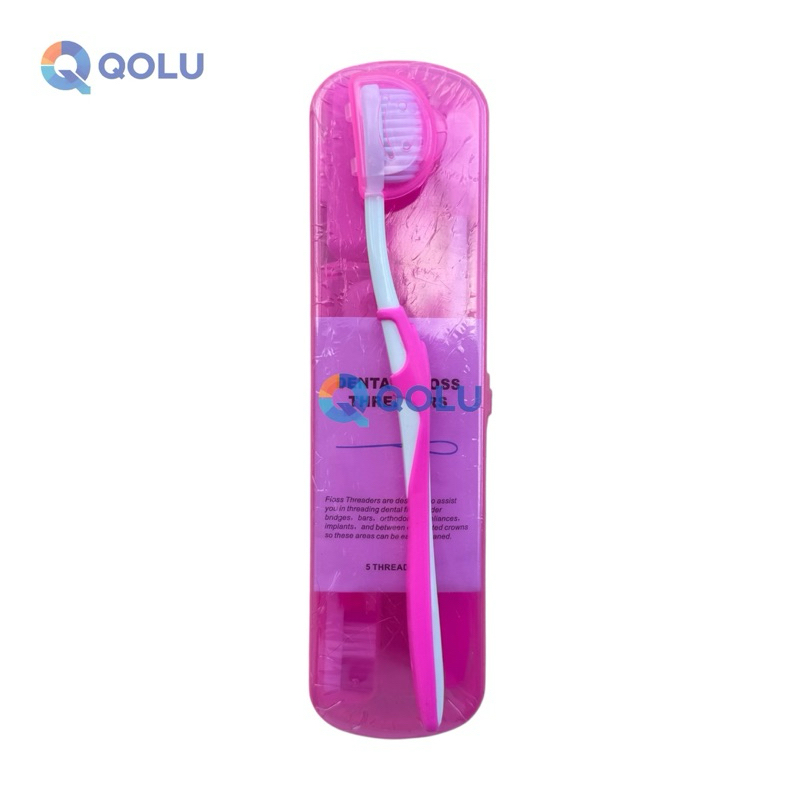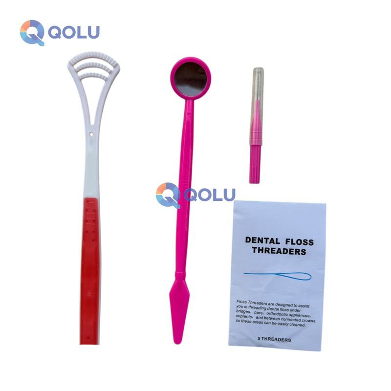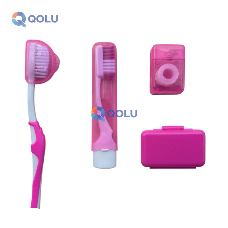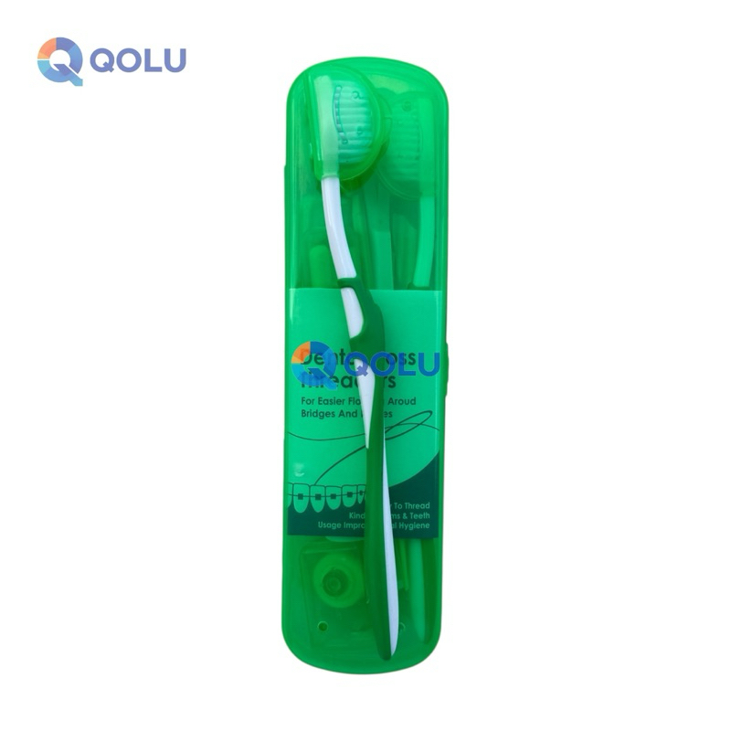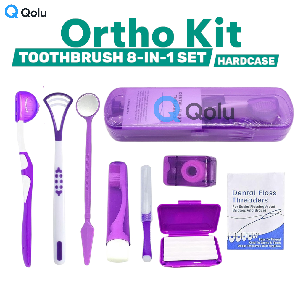 QOLU Ortho Kit 8pcs Hard Case Braces Cleaning Kit | Travel Dental Set with Toothbrush & Tongue Scra