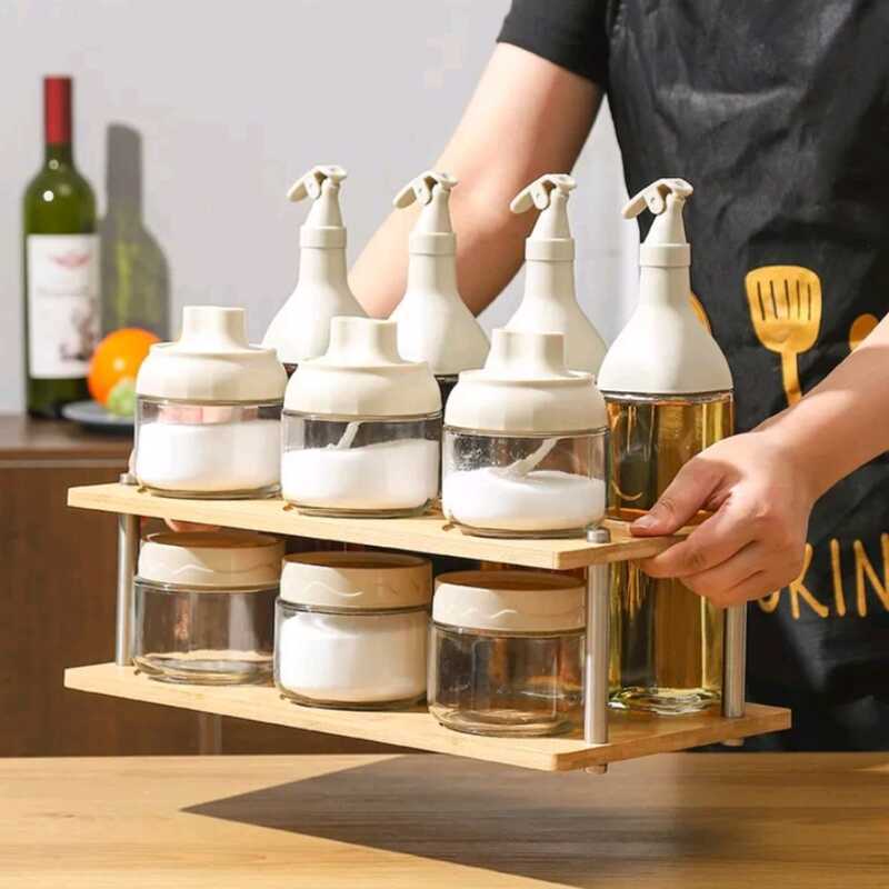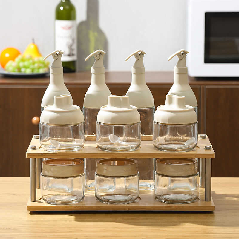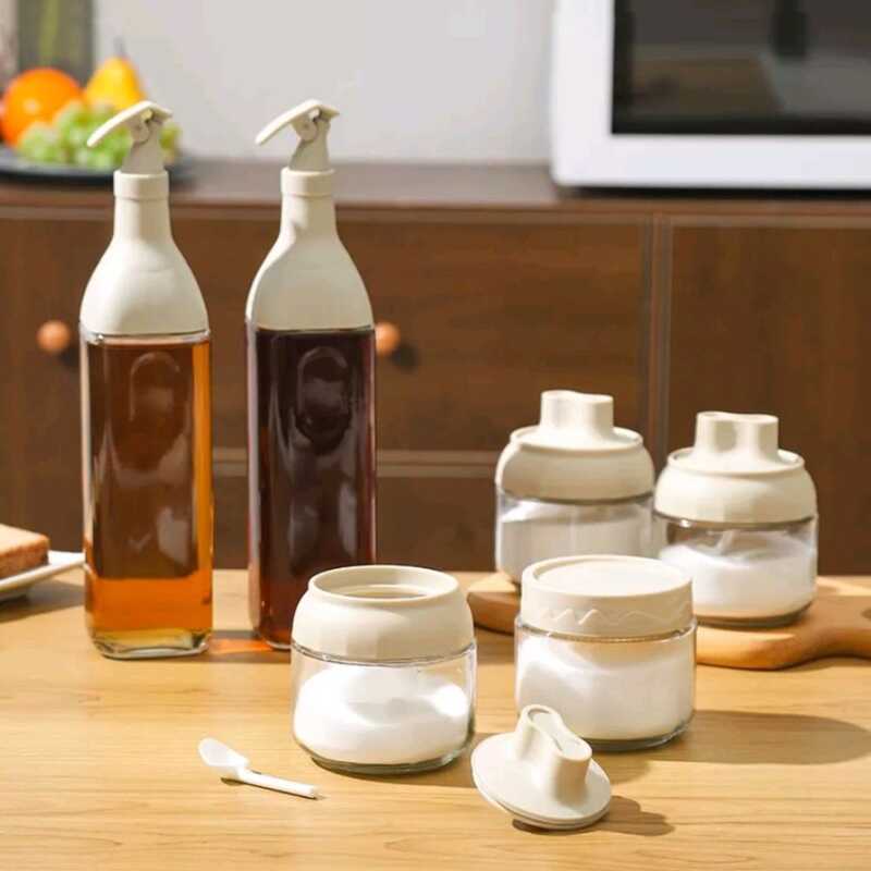 C Fashion Kitchen Condiments Bottle Set Glass Oil Seasoning Storage Jars An