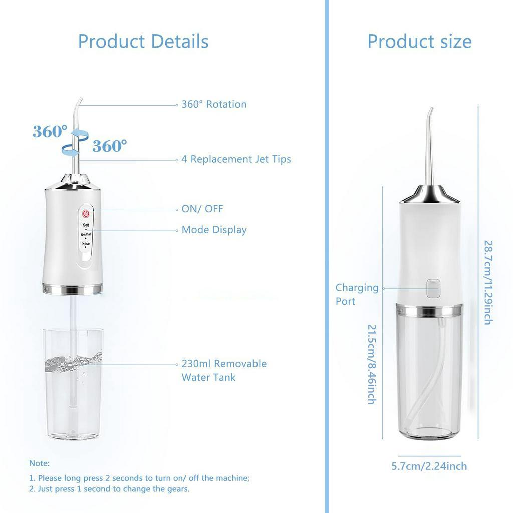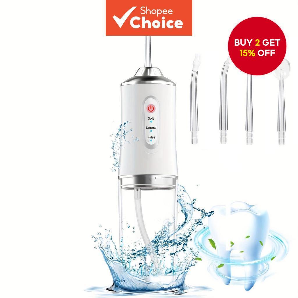 Electric Water Flosser Irrigator Oral Cordless for Teeth 3 Modes 4 Jet Tips Portable Floss