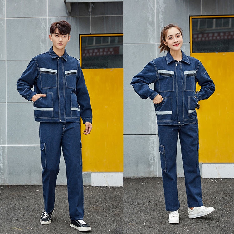 Set Jacket + Pants PPE Safe Workwear Safety Jacket Denim Work Long Sleeve Men Women Protectionclothing Labor Reflector Factory Staff Suit Multiple Pockets Jeans