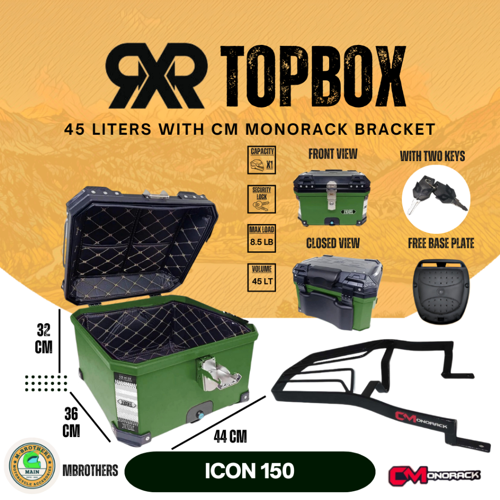 Set Keeway Icon 150 Monorack Bracket With Top Box set - 30L, 32L, 36L & 45L Variation