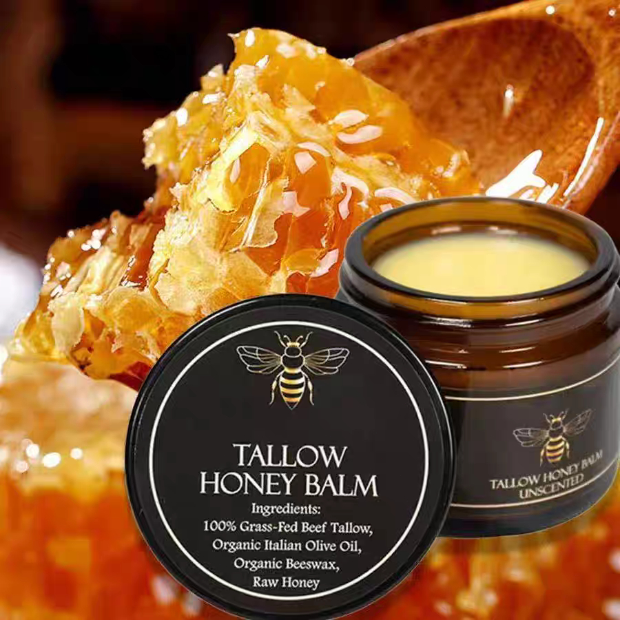 Organic Grass-Fed Beef Tallow Raw Honey Balm-Body Facial Moisturizing Cream Skincare Tools