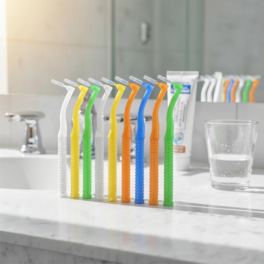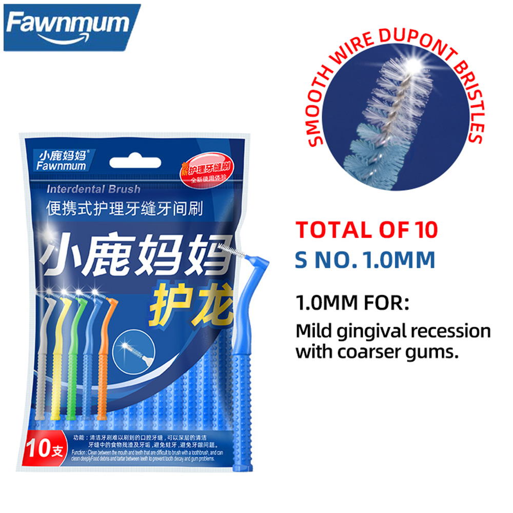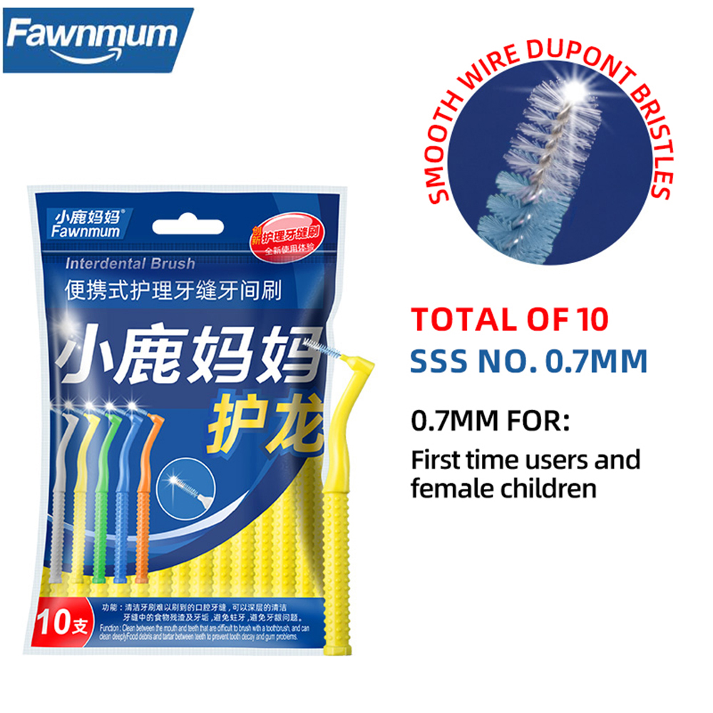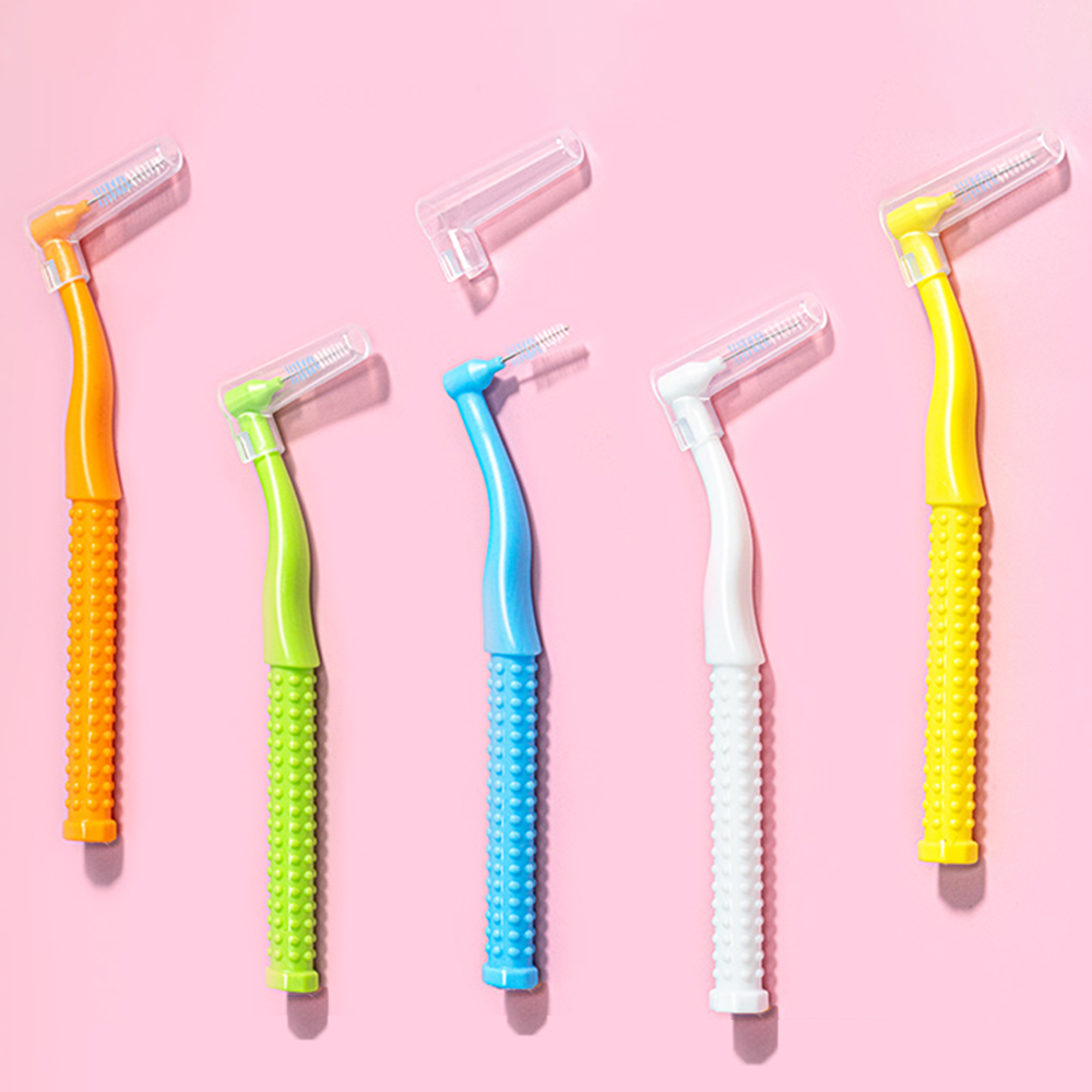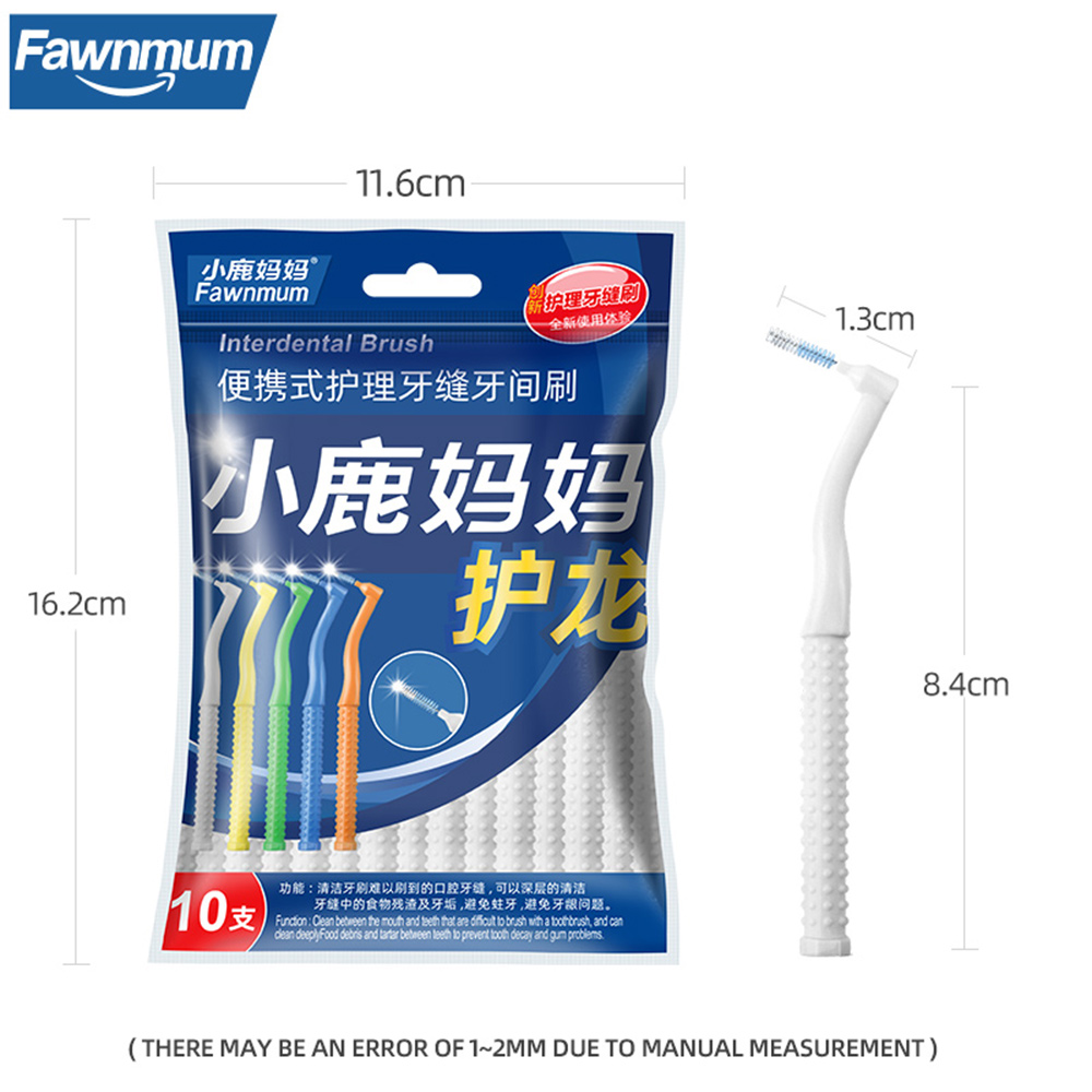 Fawnmun 10Pcs L-Shape Interdental Cleaning Brush for Dental Orthodontic Push-Pull Between Teeth Oral Care