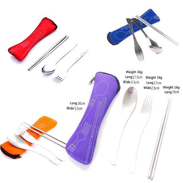 Set Portable Stainless Steel Spoon Fork Chopstick Set