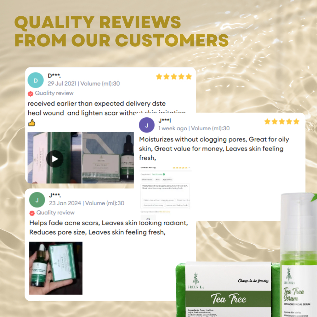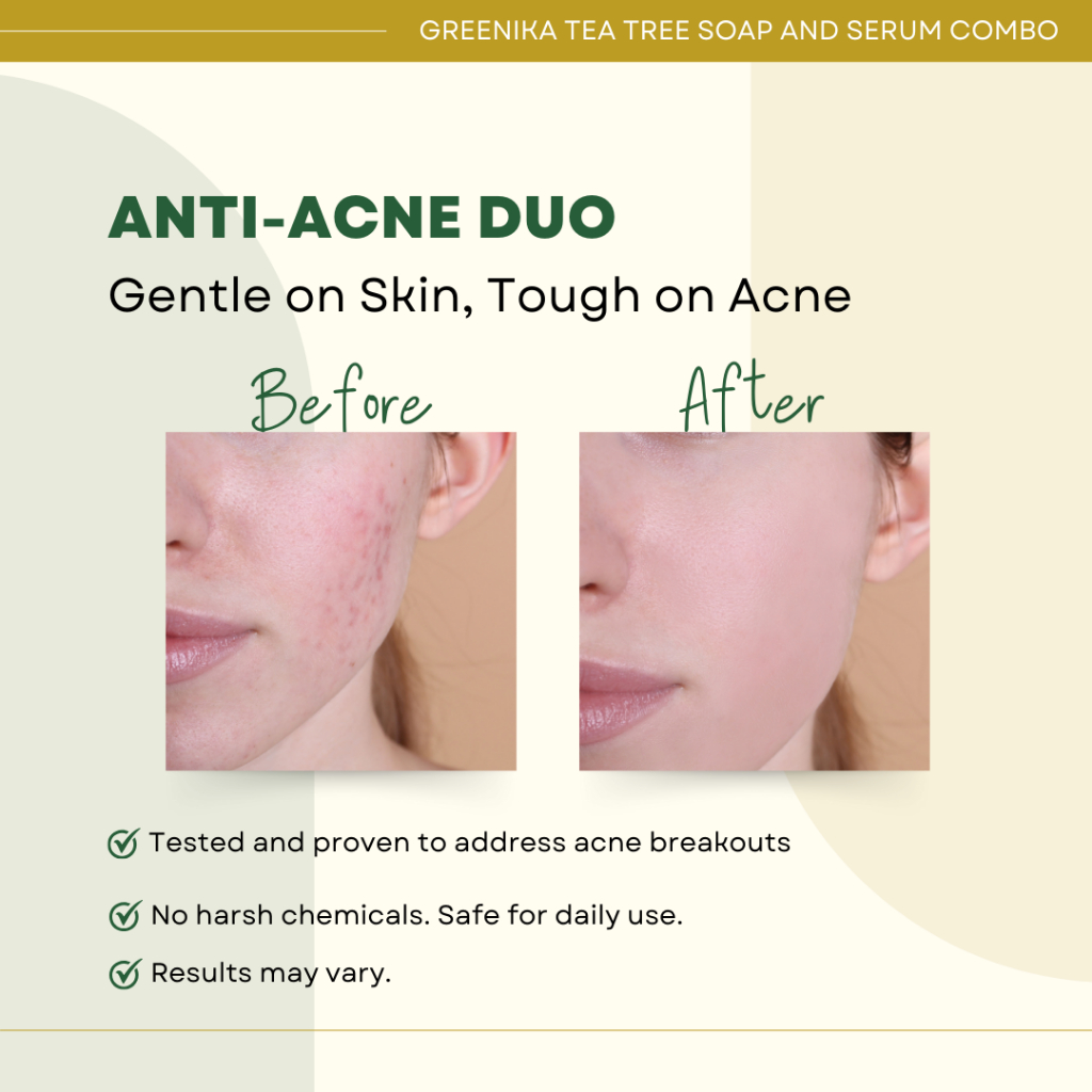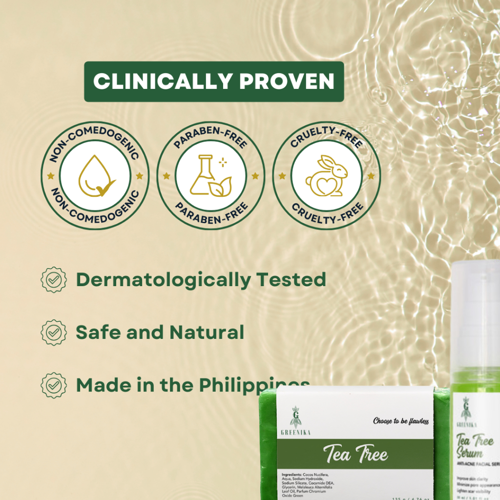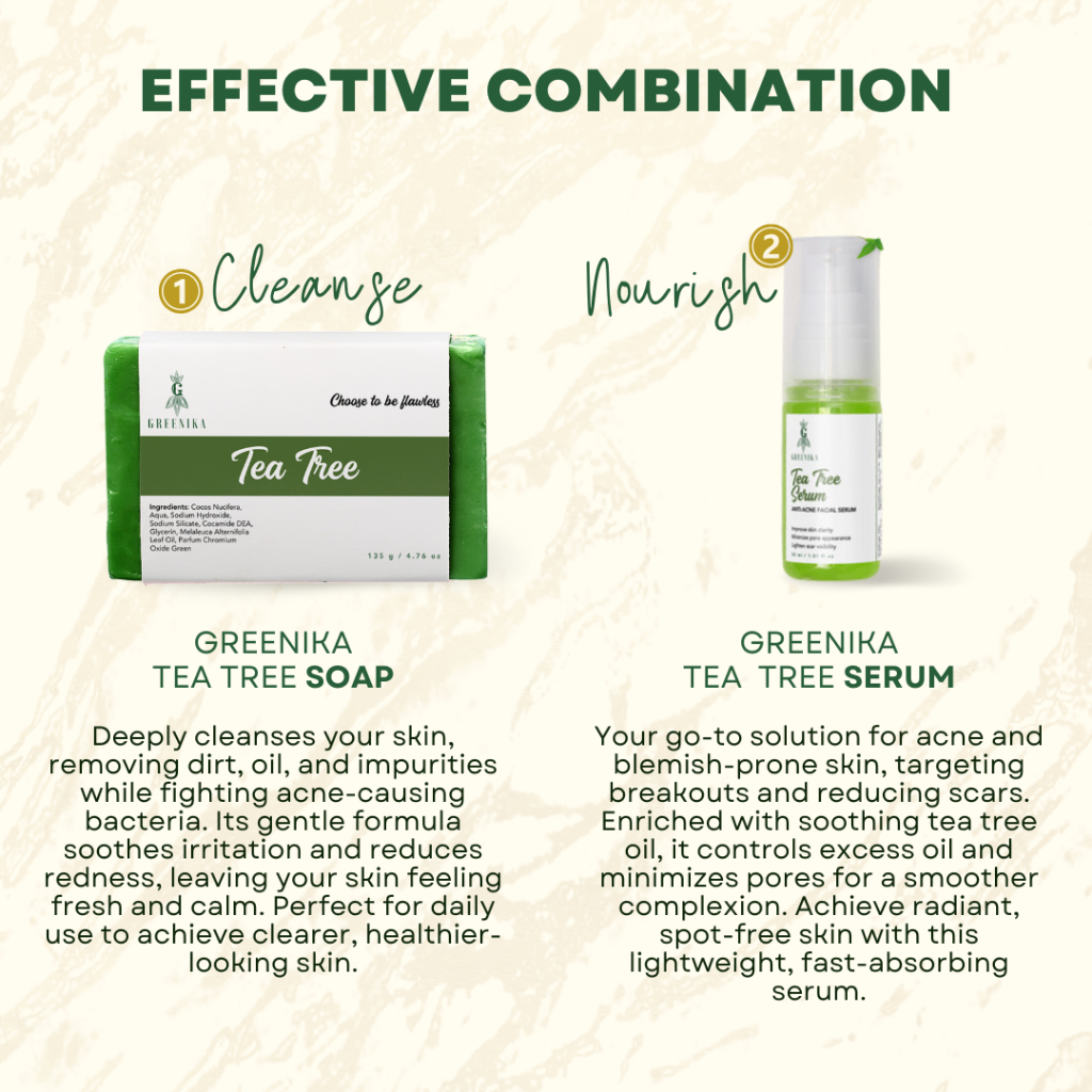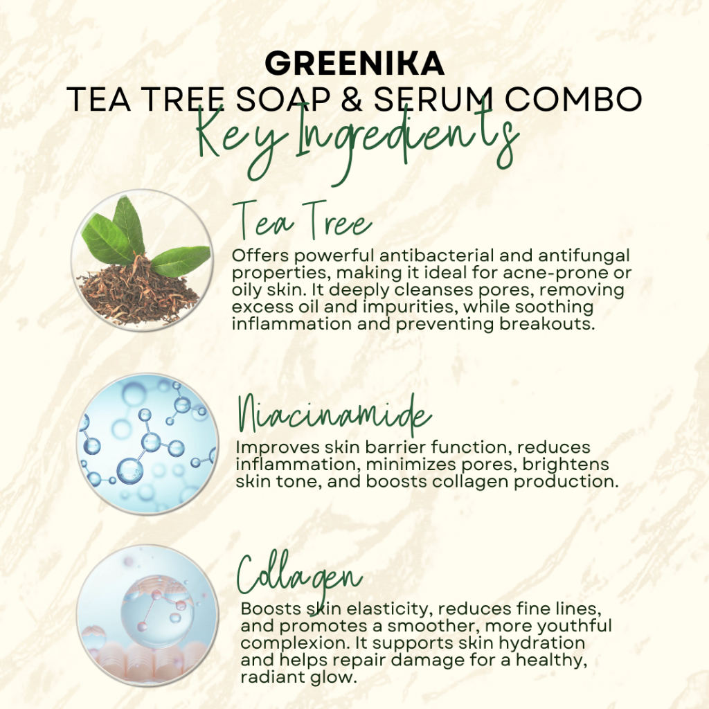 [ TEA TREE COMBO ] Greenika Tea Tree Serum and Tea Tree Soap Double Action Shrinks Pores Anti Acne