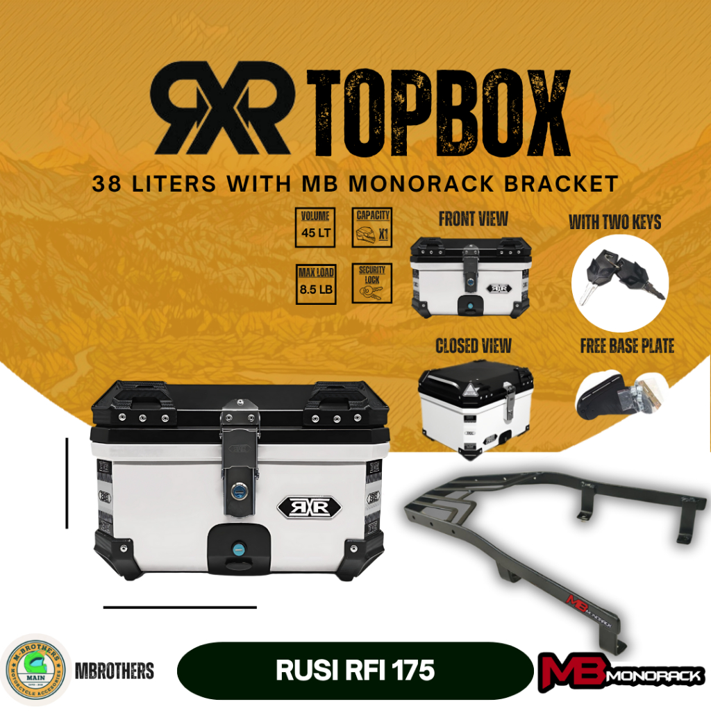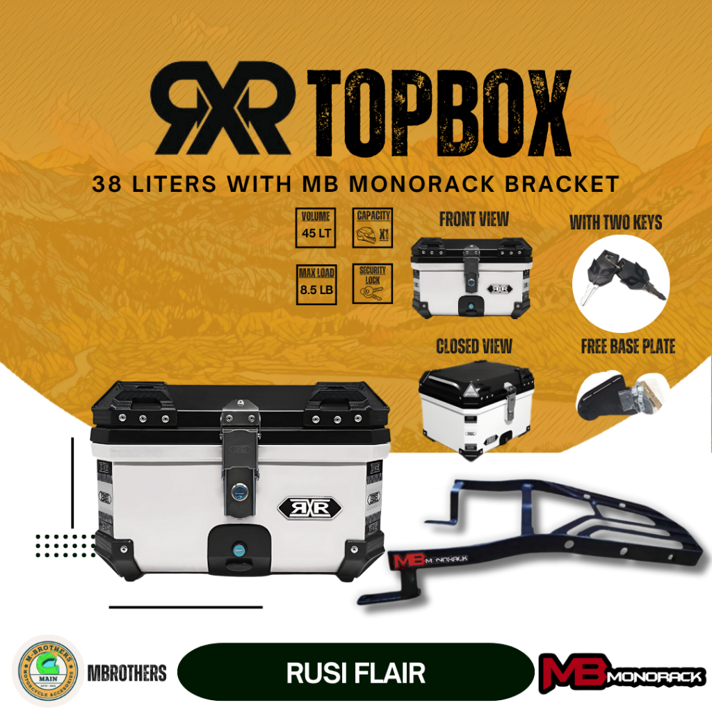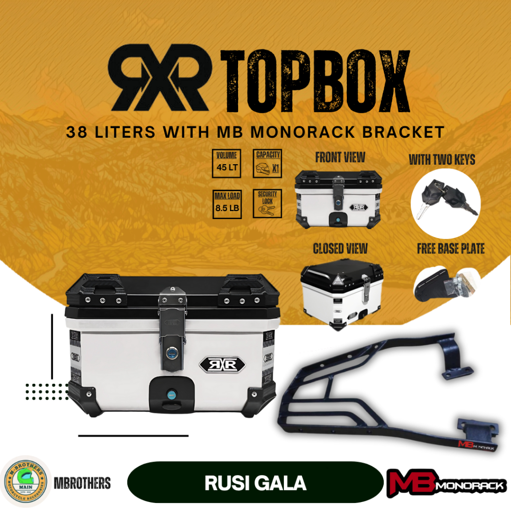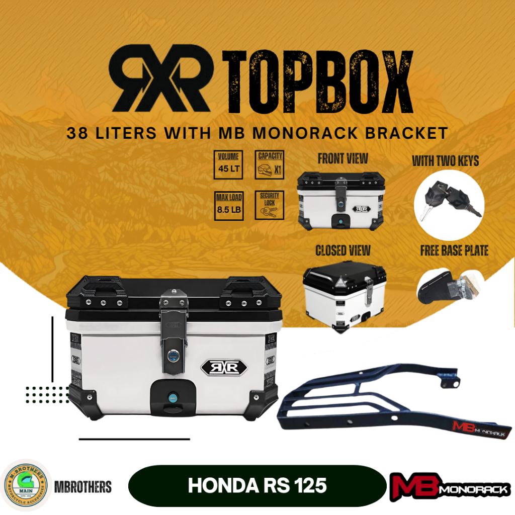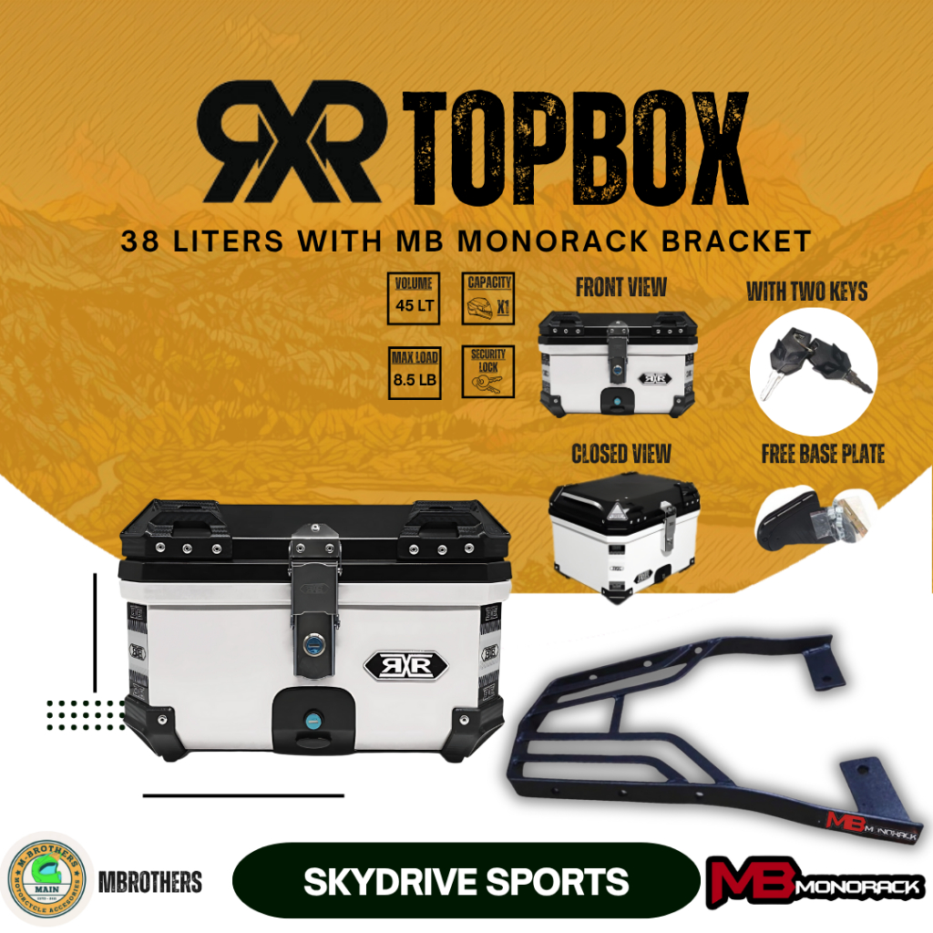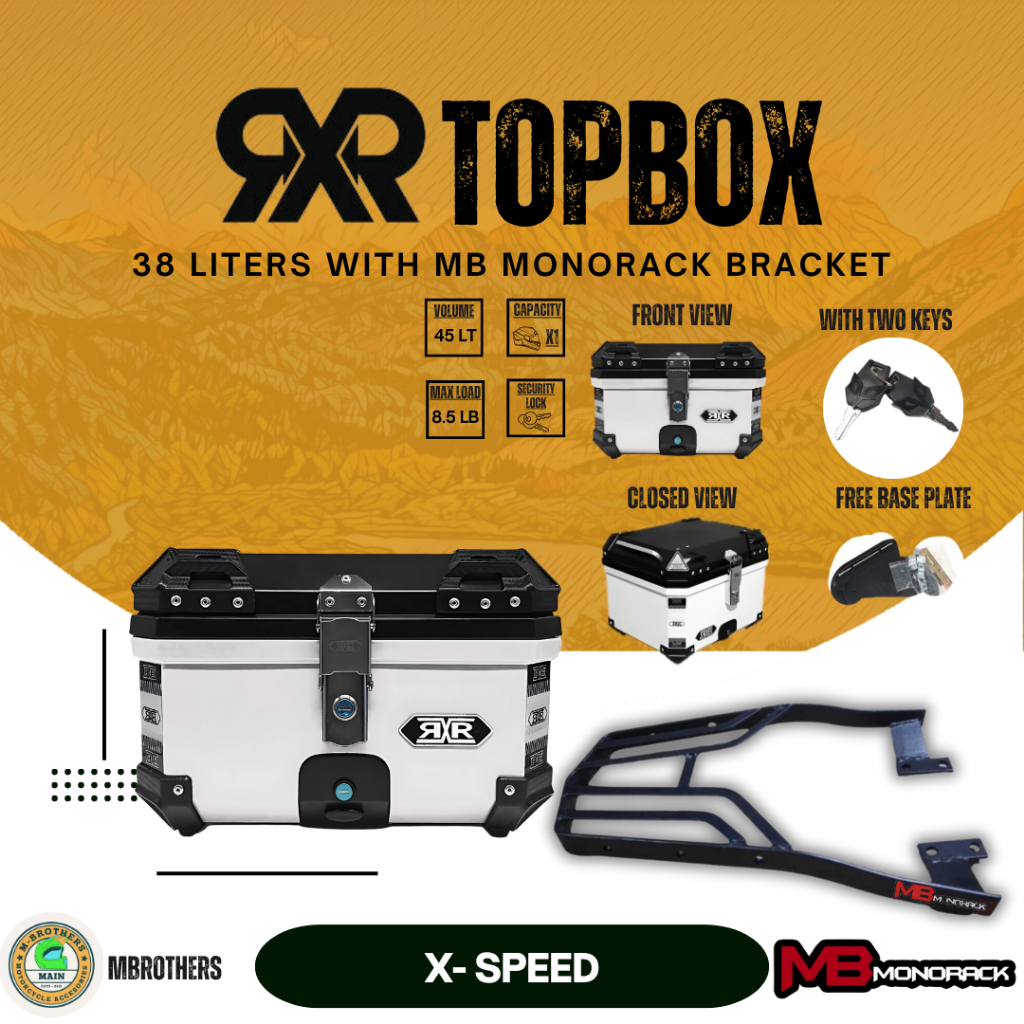 Set White RXR 38 Liters Hard Plastic Top Box Helmet Compartment With MB Monorack