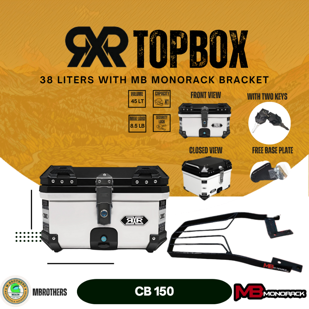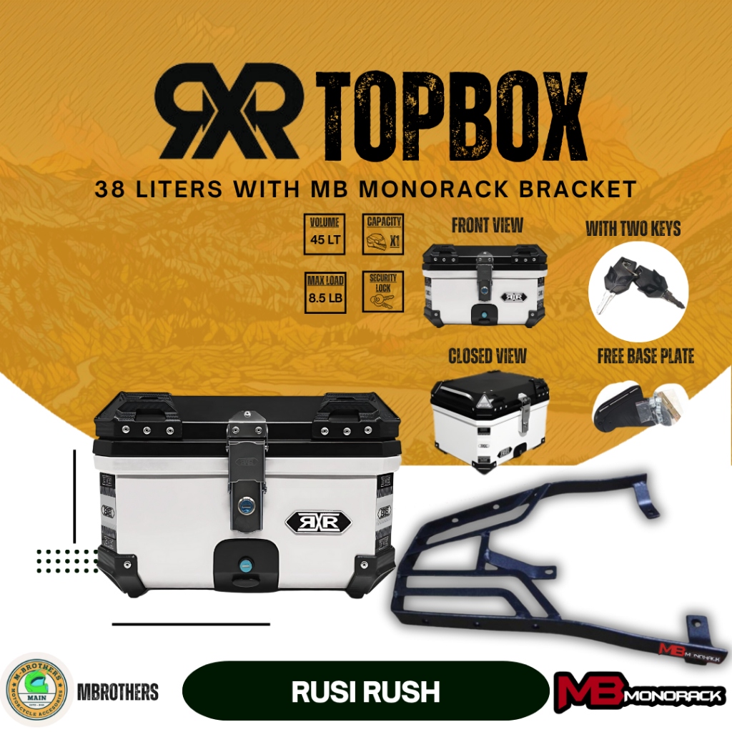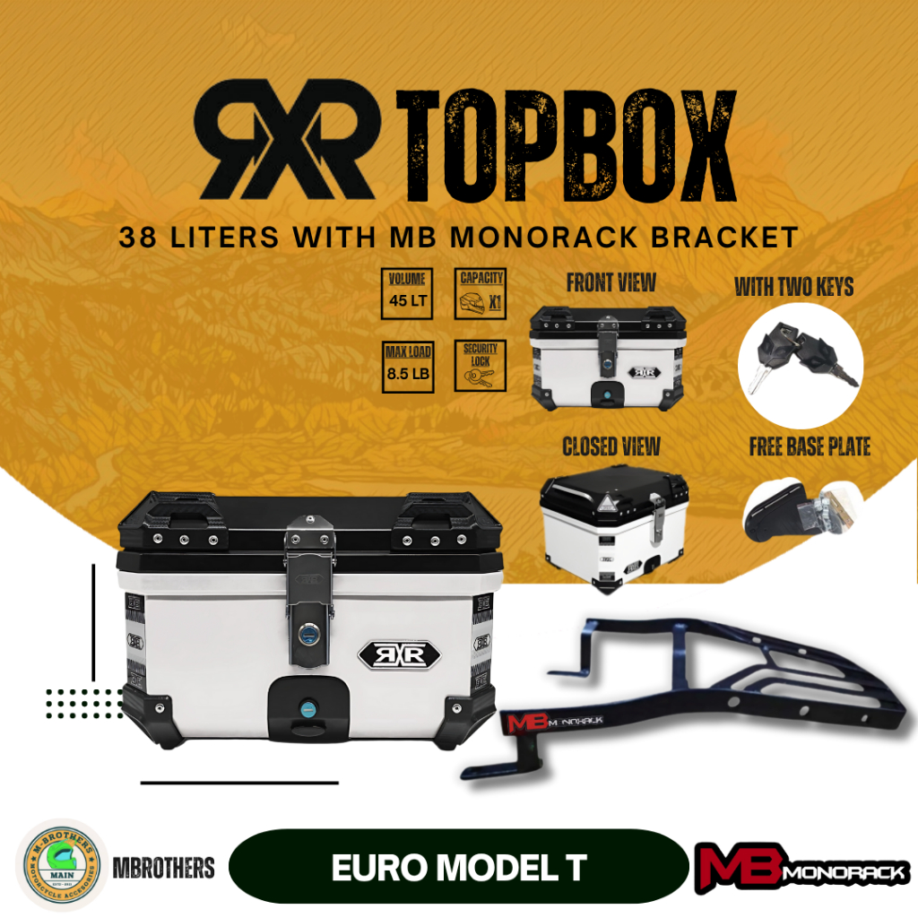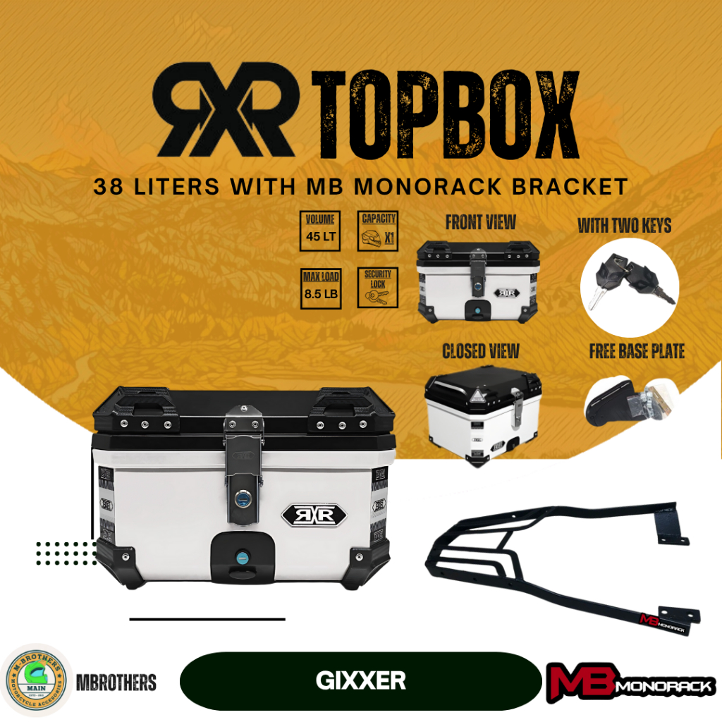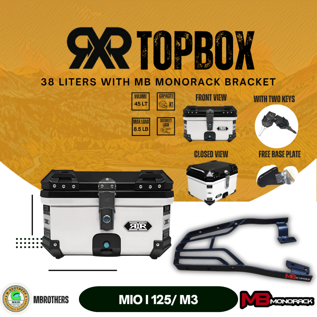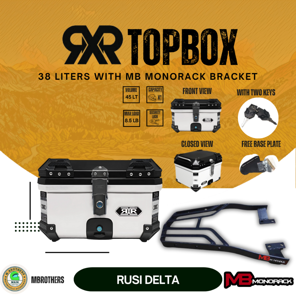 Set White RXR 38 Liters Hard Plastic Top Box Helmet Compartment With MB Monorack