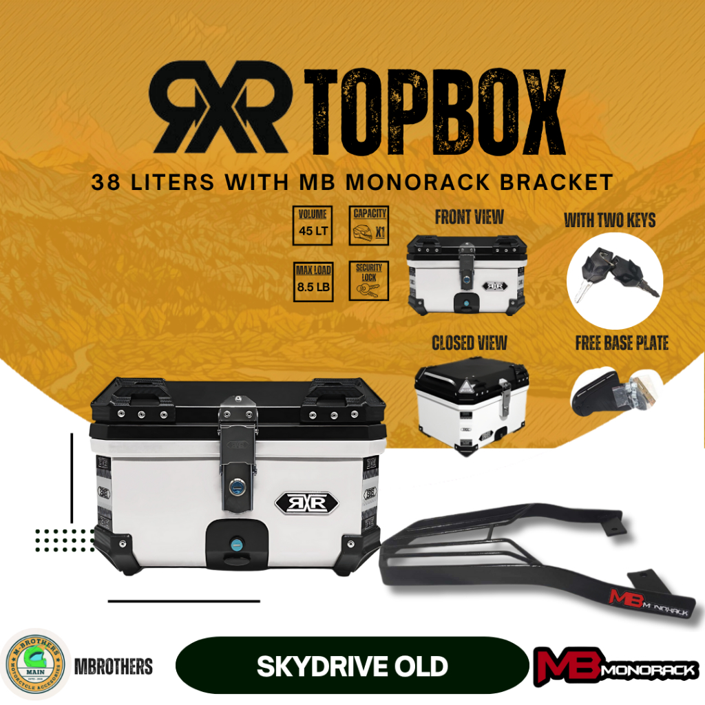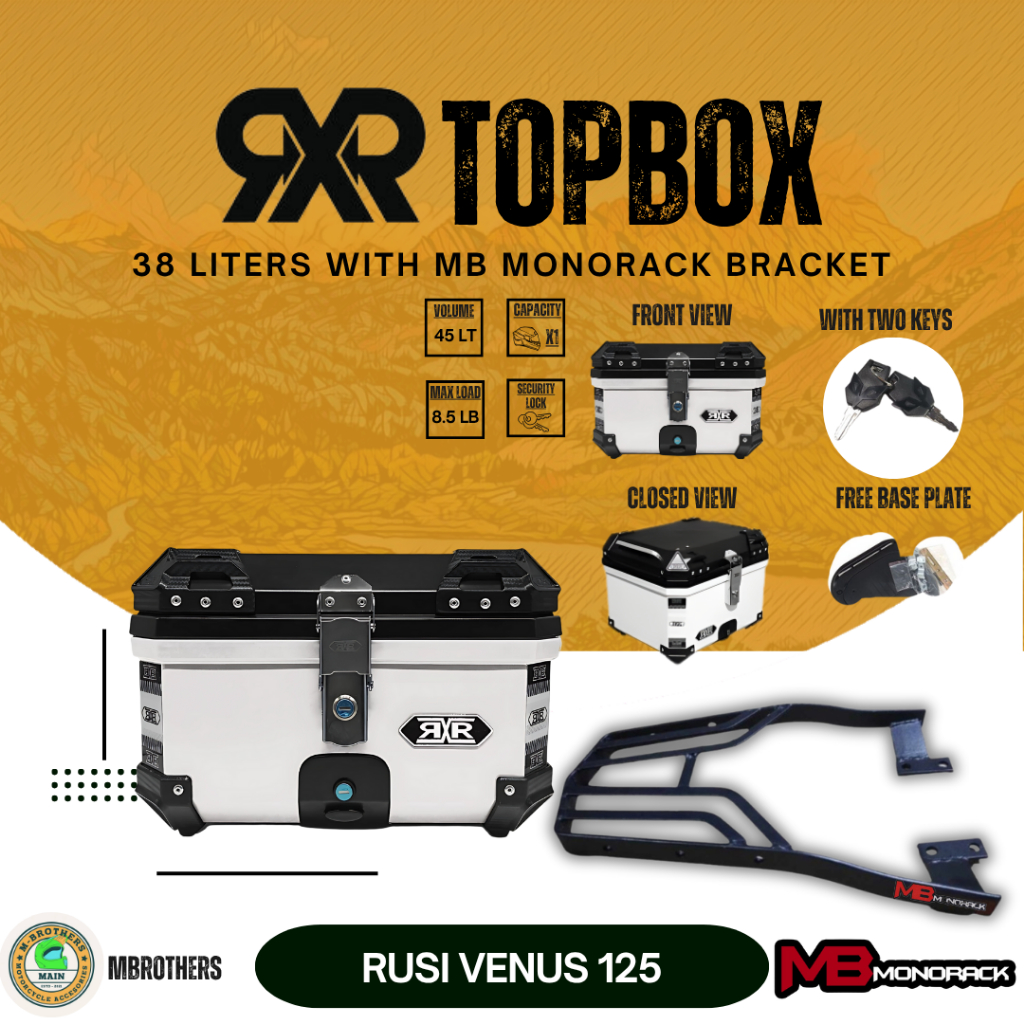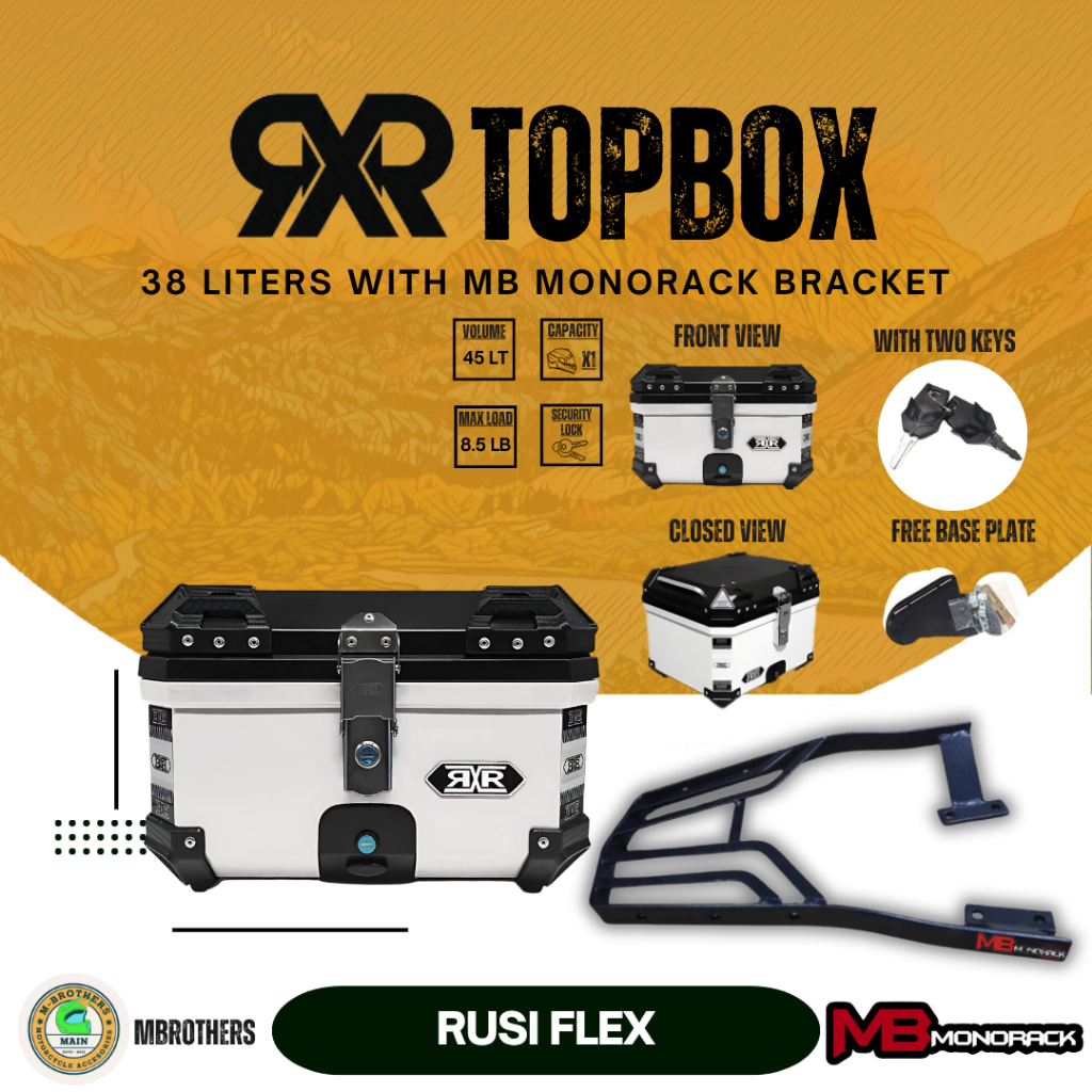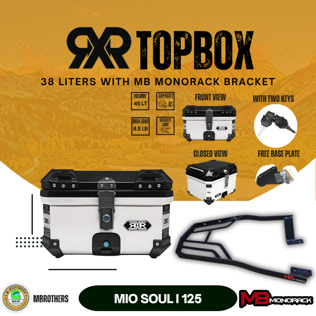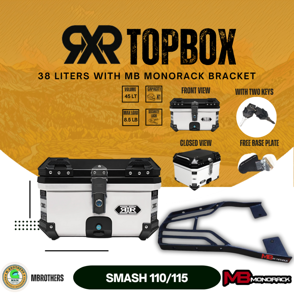 Set White RXR 38 Liters Hard Plastic Top Box Helmet Compartment With MB Monorack