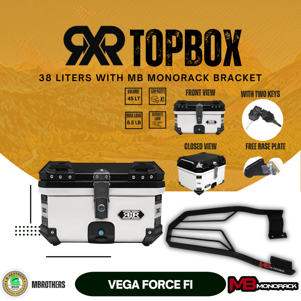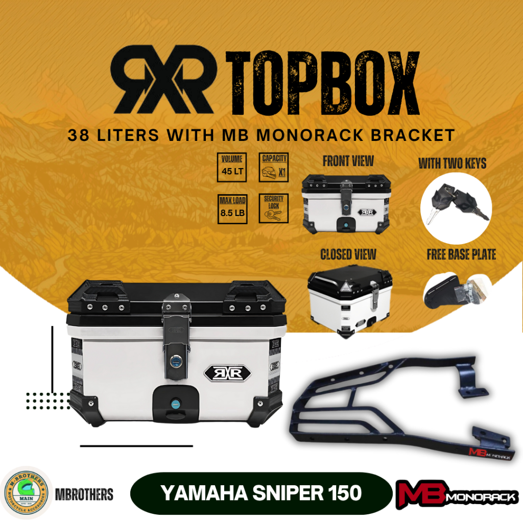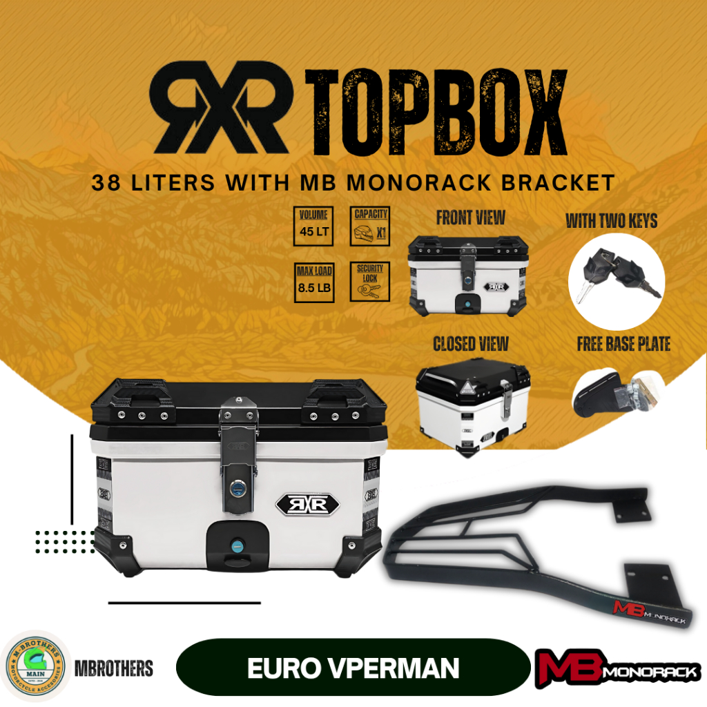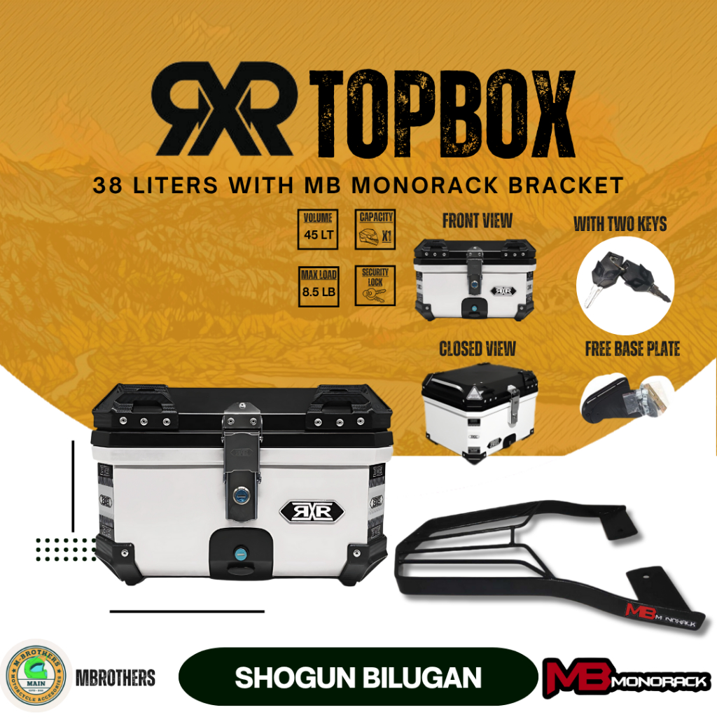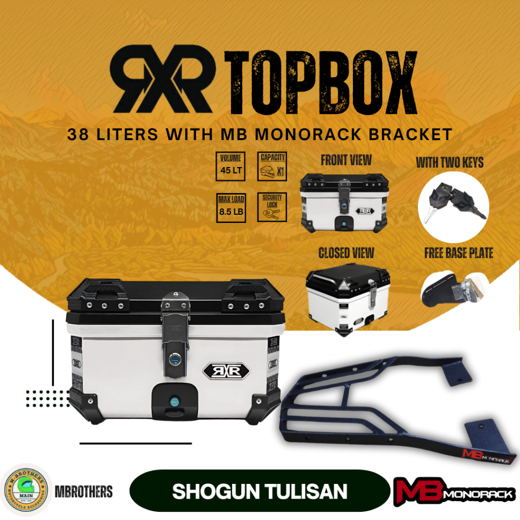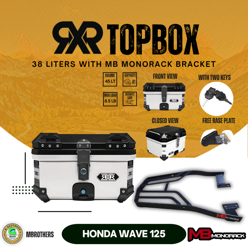 Set White RXR 38 Liters Hard Plastic Top Box Helmet Compartment With MB Monorack