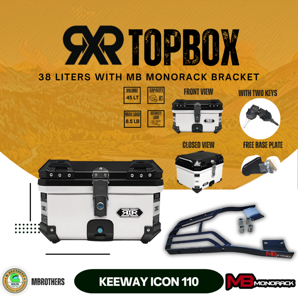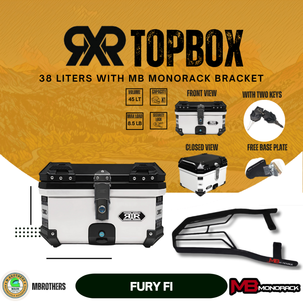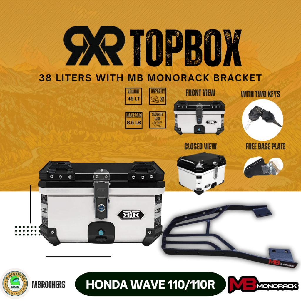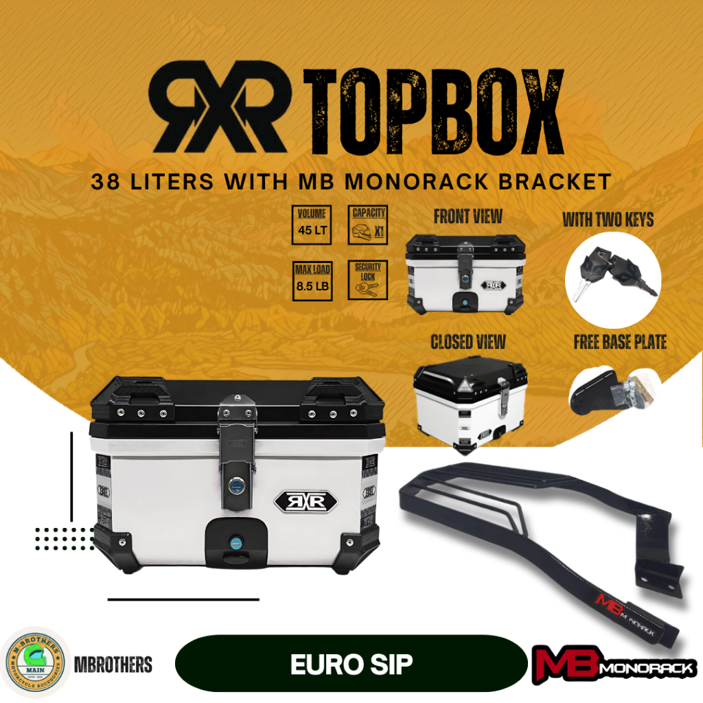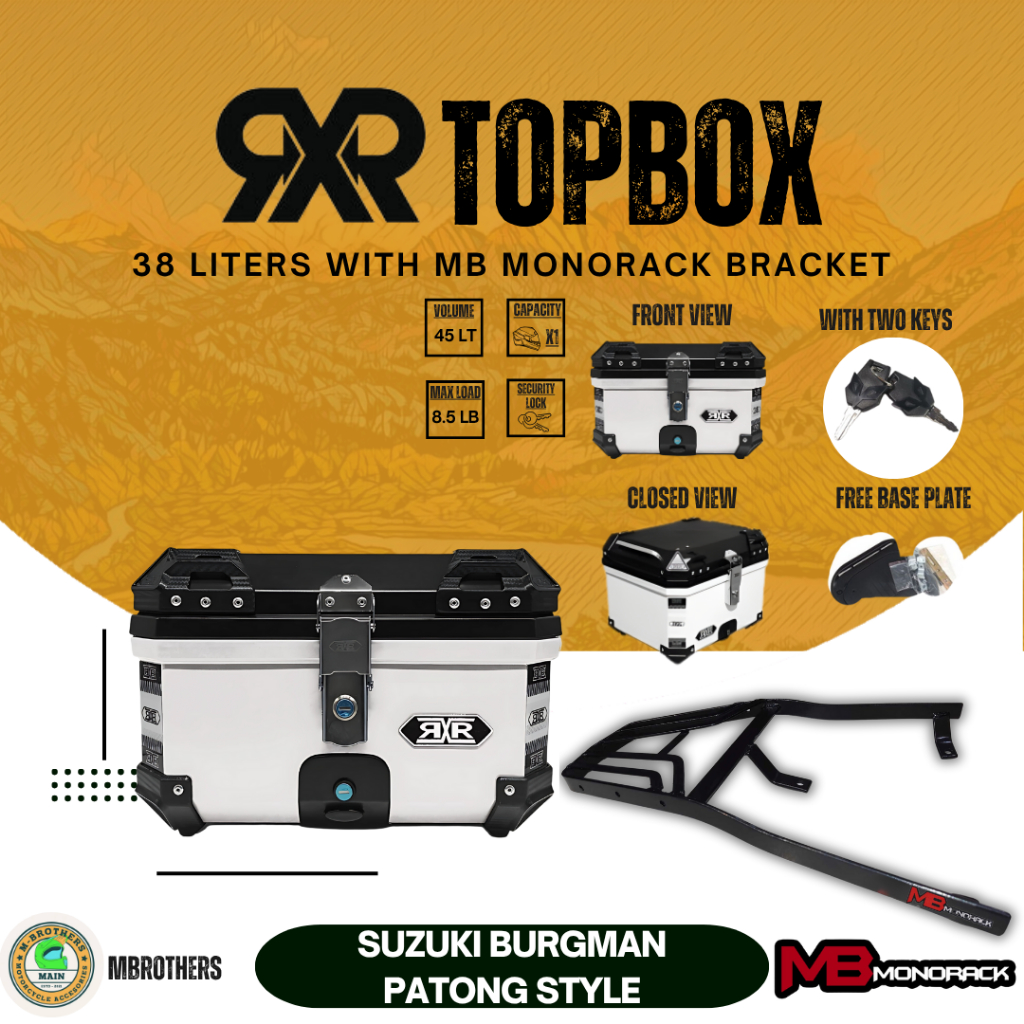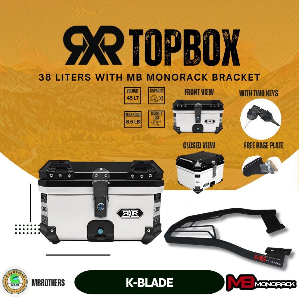 Set White RXR 38 Liters Hard Plastic Top Box Helmet Compartment With MB Monorack