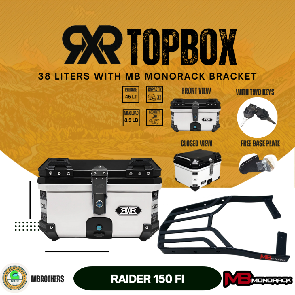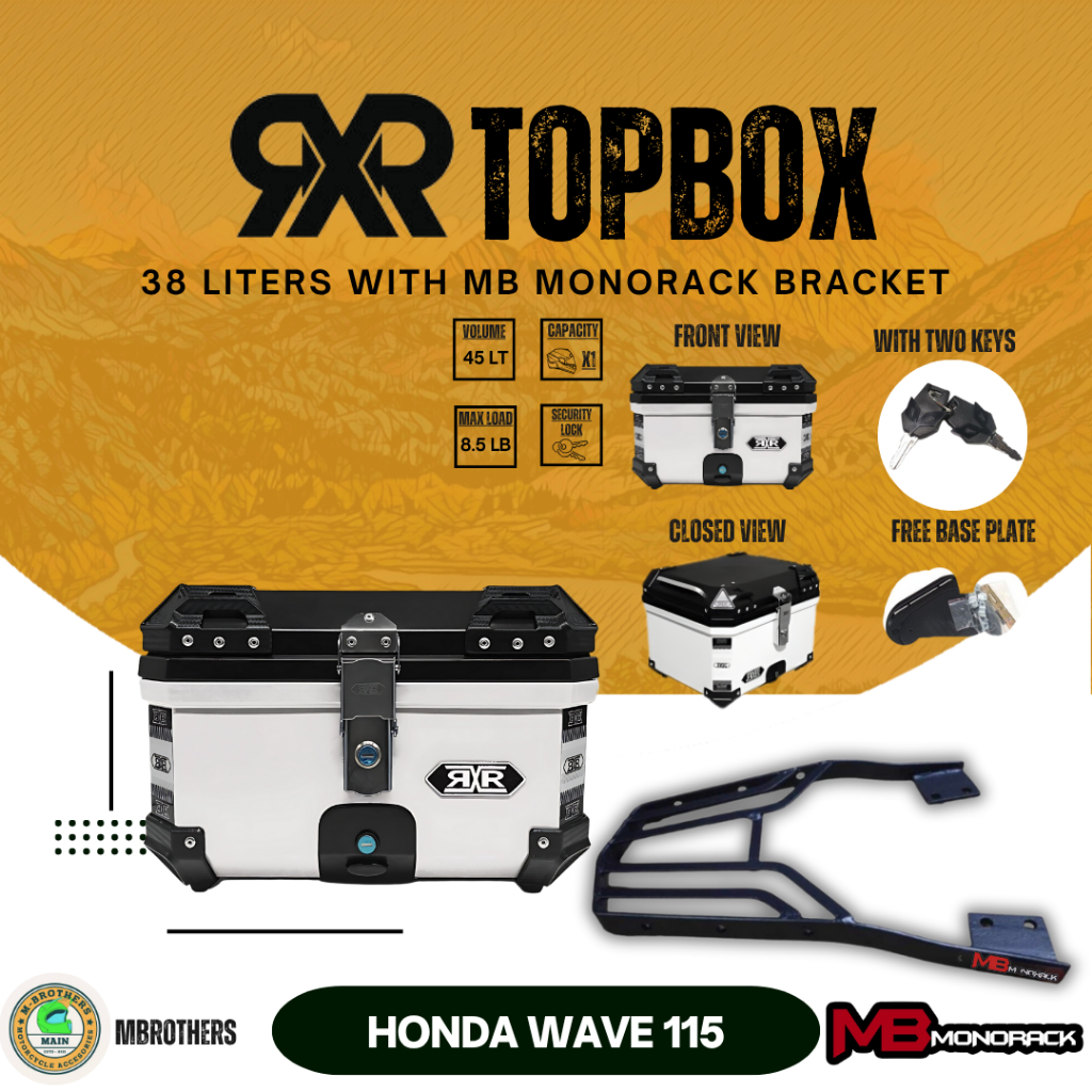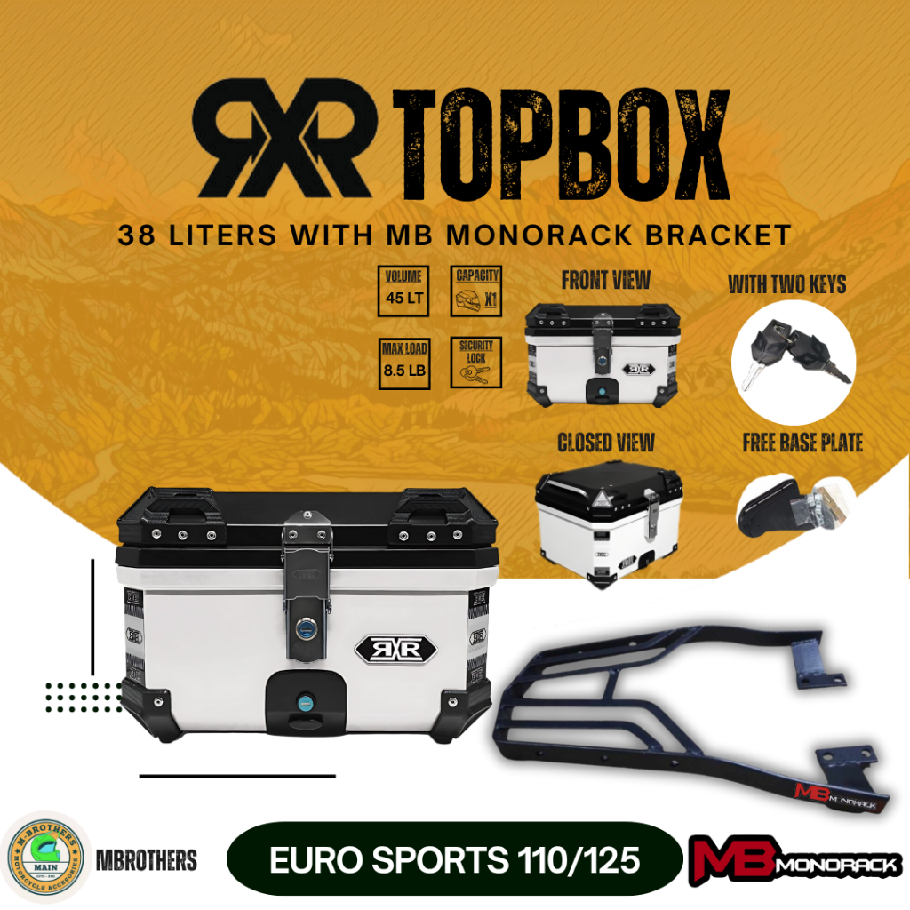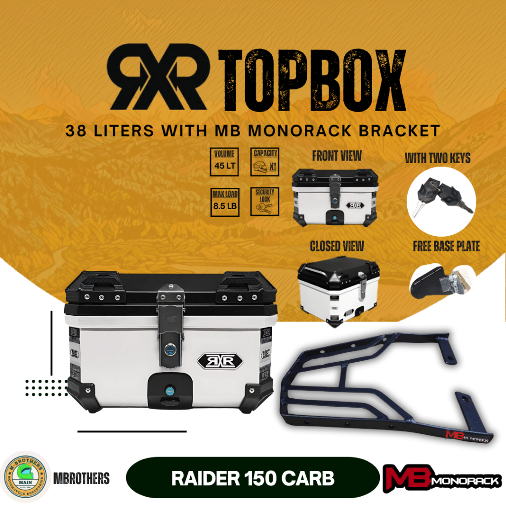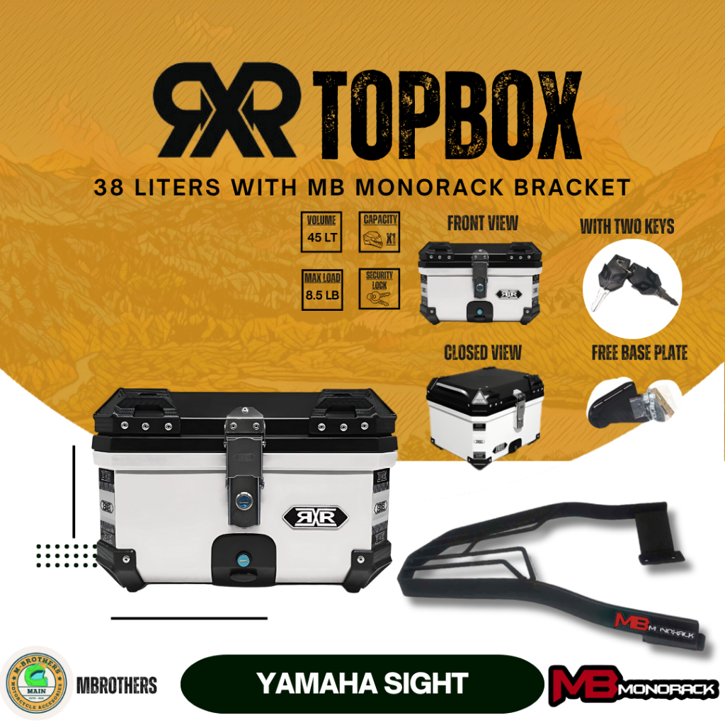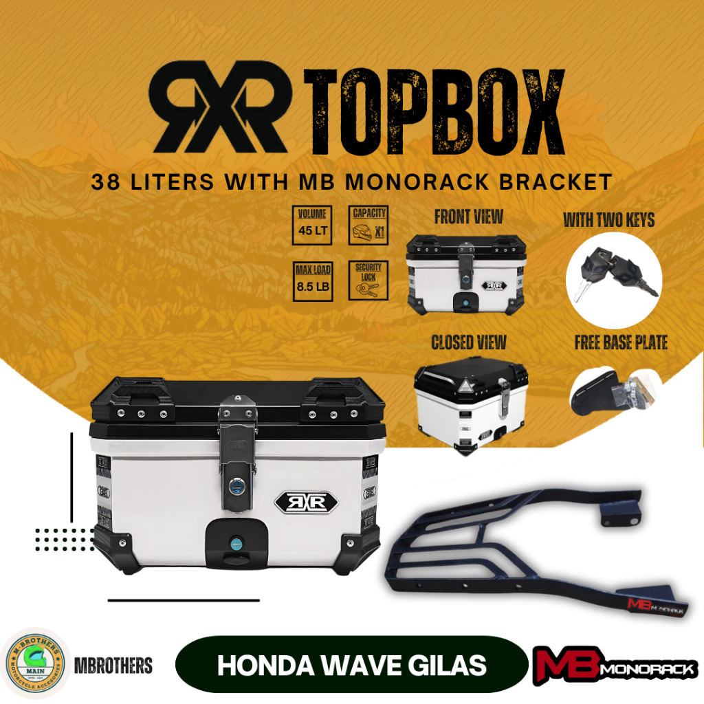 Set White RXR 38 Liters Hard Plastic Top Box Helmet Compartment With MB Monorack