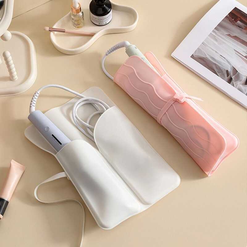HUNIU 2 In 1 Hair Curler Bag Folding Silicone Straightener Storage Pouch Multifunction Dustproof D5