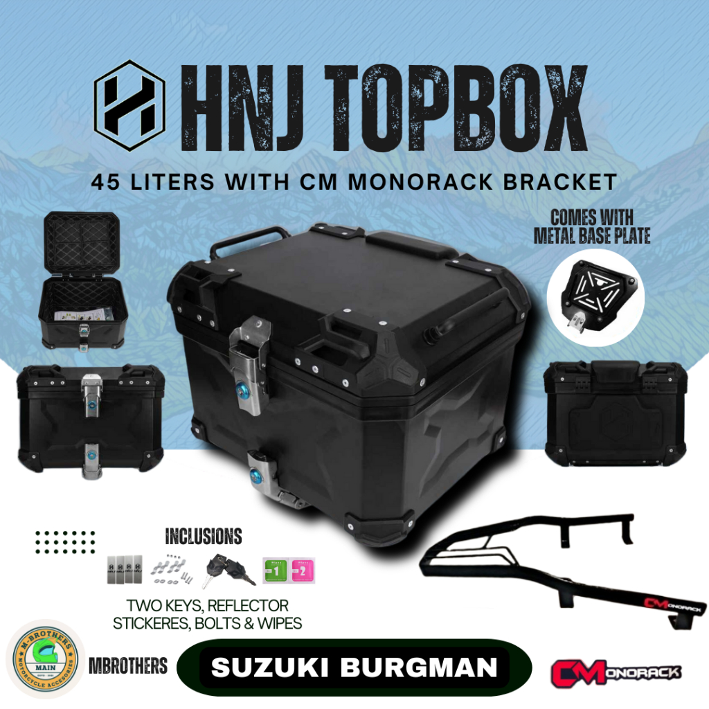 Set Suzuki Burgman Monorack Bracket With Top Box set - 30L, 32L, 36L & 45L Variation