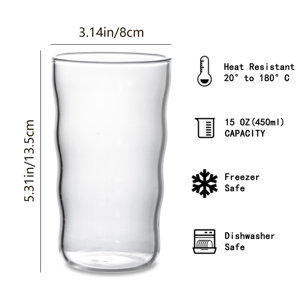 Set ng 2 Baso ng 15 Oz na Glass - Matibay na Baso para sa Inumin. Ginagamit para sa Bar, Tubig, Juice at mga Cocktail.