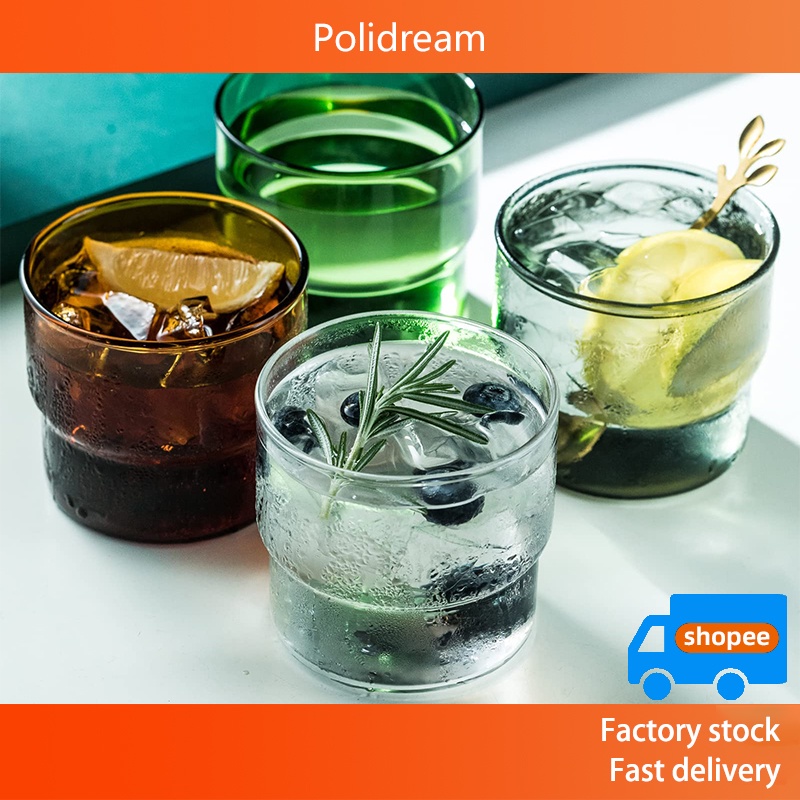 Set ng 4 na Vintage Glassware - 10 oz, Nakakapila na Kulay na Mga Baso, Premium na Baso para sa Mainit at Malamig na Inumin, Tubig, Soda, Gatas, Juice, Perpektong Regalo.