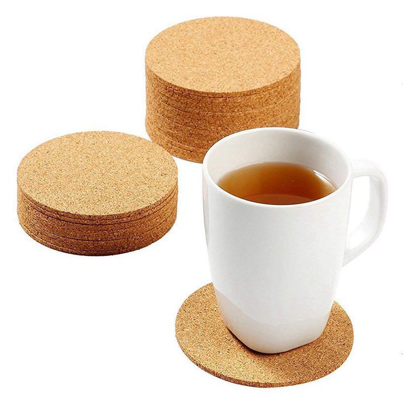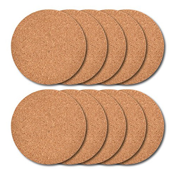 Set of 10 Cork Bar Drink Coasters - Absorbent and Reusable - 90mm, 5mm Thick