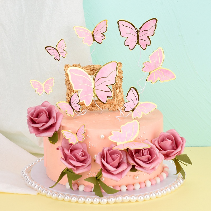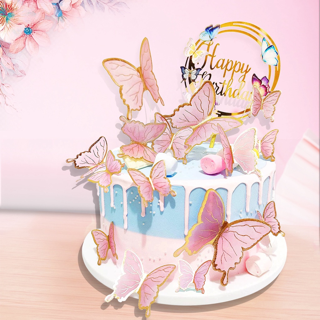 Set of 10PCS Butterfly Cake Decorations for Girls Women's Happy Birthday Wedding Party Cake Wall Party Food Decoration