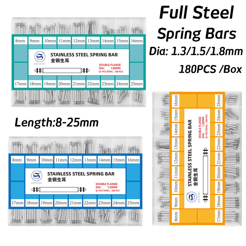 Set of 180PCS Full Stainless Steel Watch Strap Spring Bar 1.3mm 1.5mm 1.8mm Watch Band Lug Connect Spring Pins Bars Rod