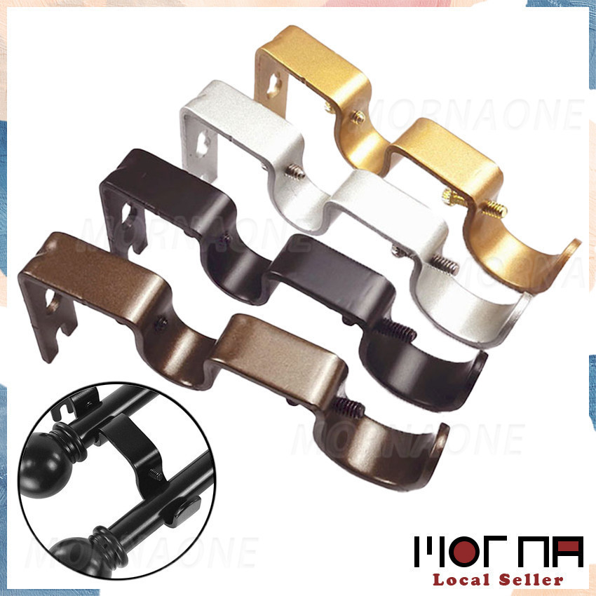 Set of 3 Double Curtain Rod Bracket Set with Screws Heavy Duty Metal Curtain Rod Wall Brackets