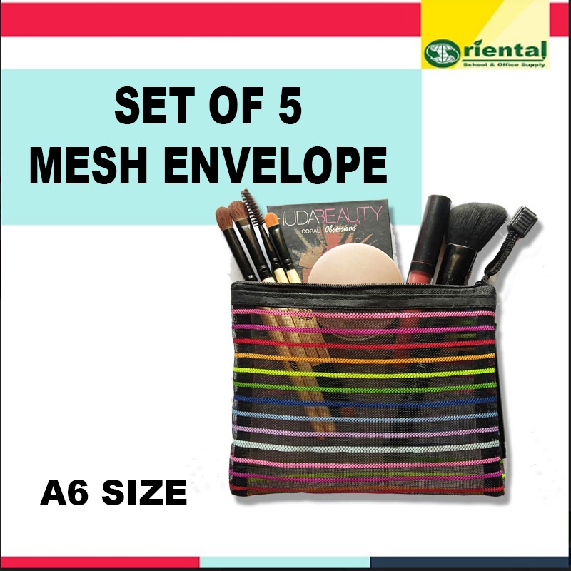 Set of 3 Mesh Envelopes for Paper and Make Up Accessories Organizers - Assorted Colors of 3pcs ONLY