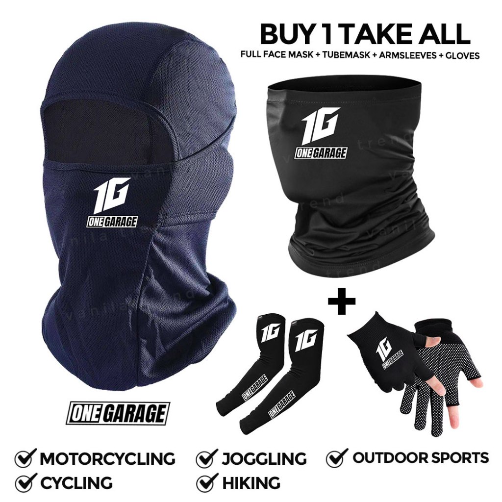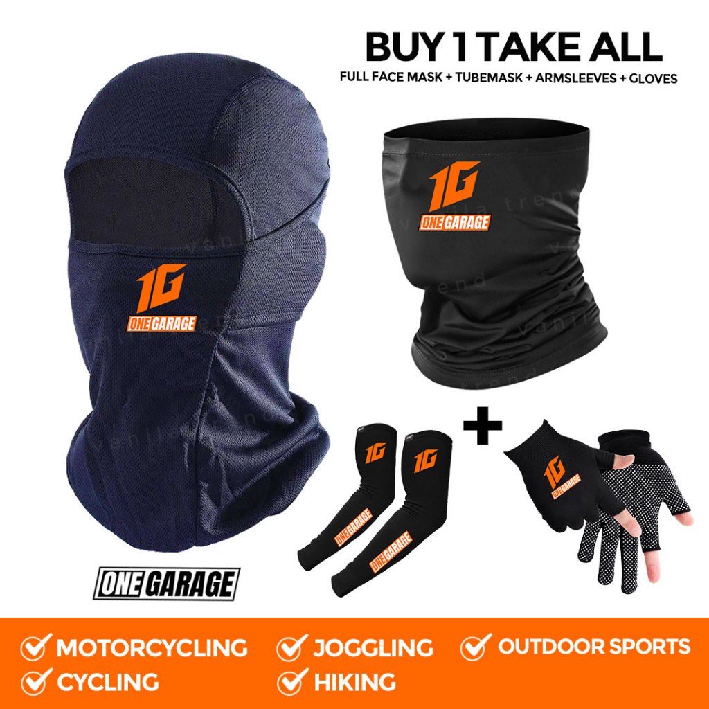 Set of 4 Balaclava + Tube Mask + Arm Sleeves + Anti Slippery Gloves for Men, Women, Motorcycle, Bike