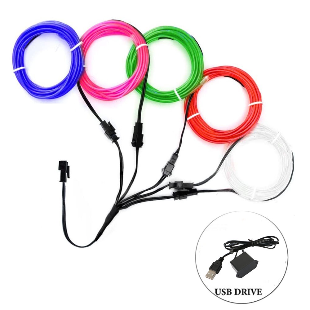 Set of 5-in-1 Auto Light Interior Led Decorative EL Wiring Neon Strip Car Flexible Ambient Light USB Atmosphere Diode