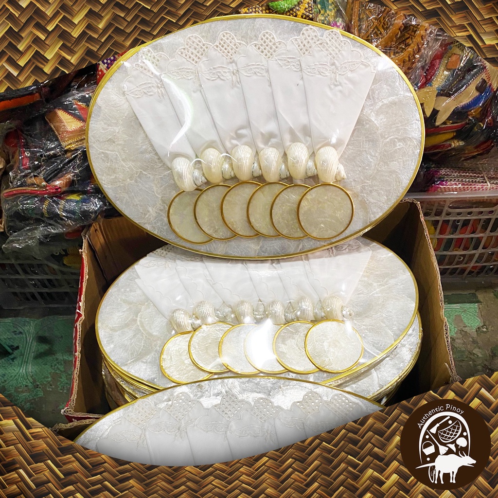 Set of 6 Capiz / Kapis Shell Placemats, Coasters, Table Napkin & Table Napkin Holder | Very Elegant