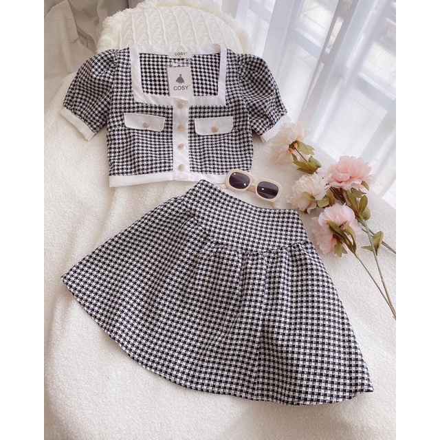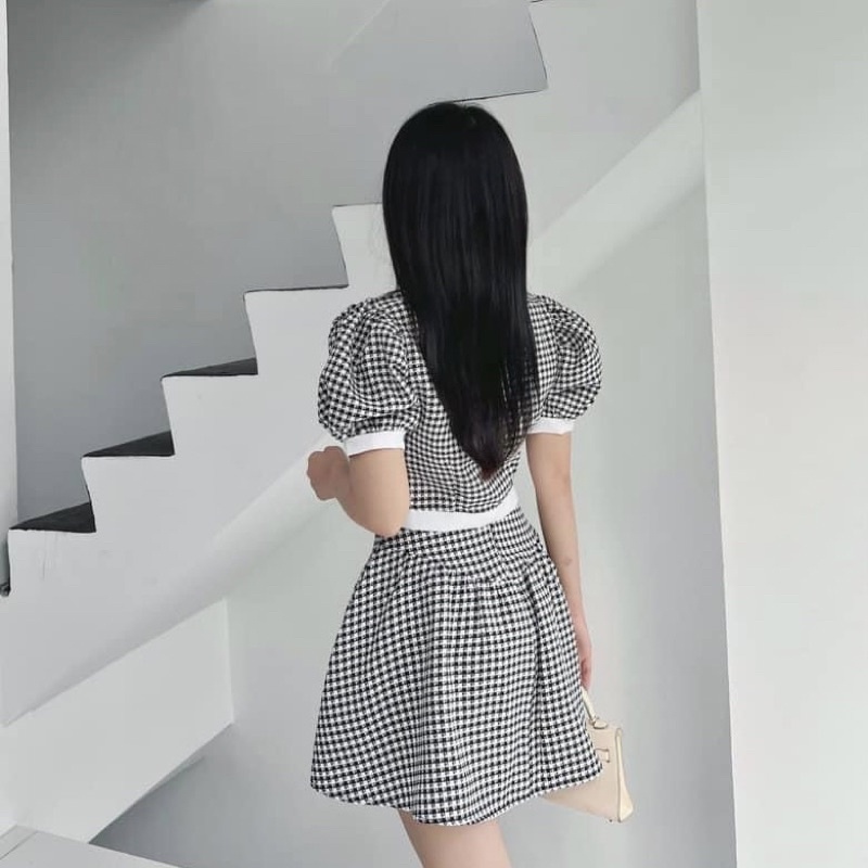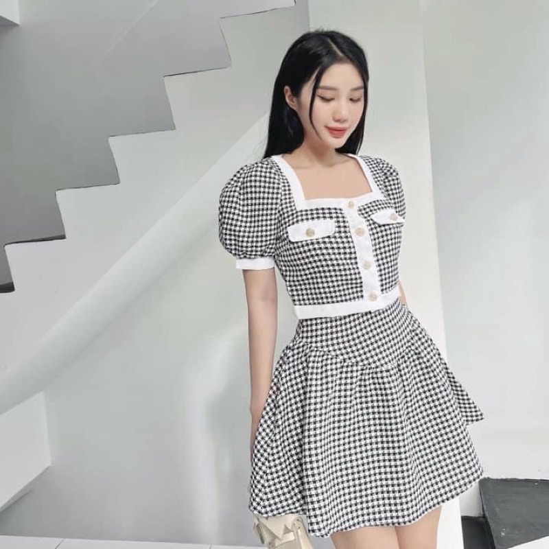 Set of checkered foam fabric with square neck and white border (with real pictures)