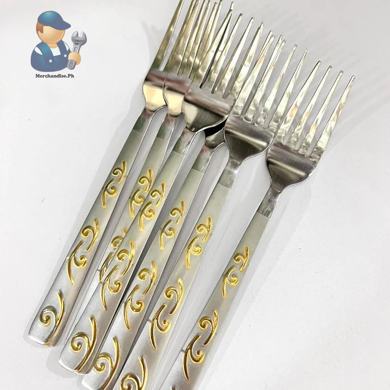 Set spoon and fork 6pcs spoon 6pcs fork stainless materials Cutlery Set Dinnerware Gold Plating