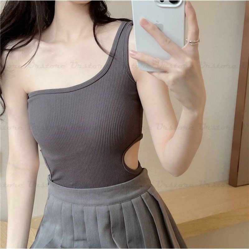 Sexy Exposed Waist One-Shoulder Summer-Ready Asymmetric Sando Waist Cut-Out Design in Multi Color