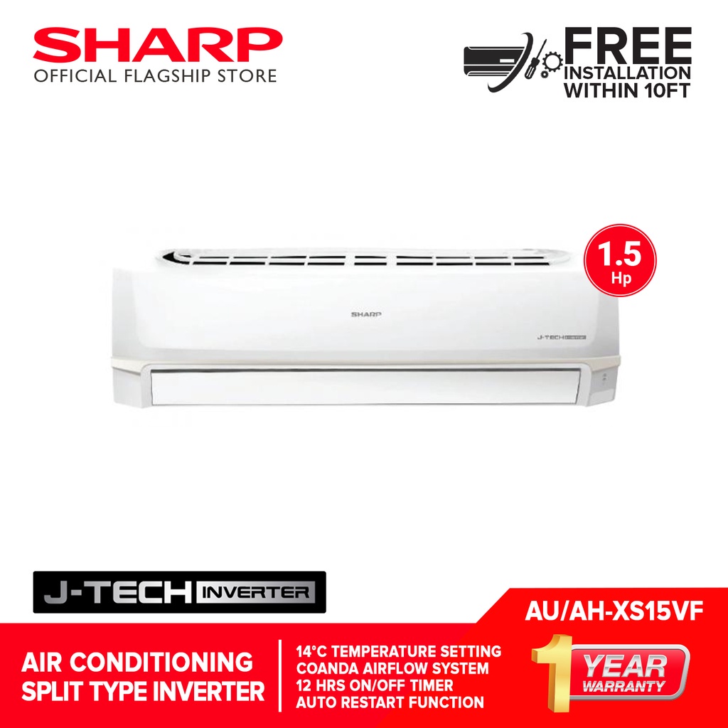 Sharp AH-XS15VF 1.5 HP Aircon Split Type J-tech Inverter Air Conditioner
