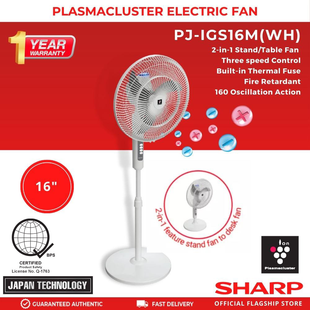 Sharp PJ-IGS16M(WH) 16" Plasmacluster Ion Electric Stand Fan