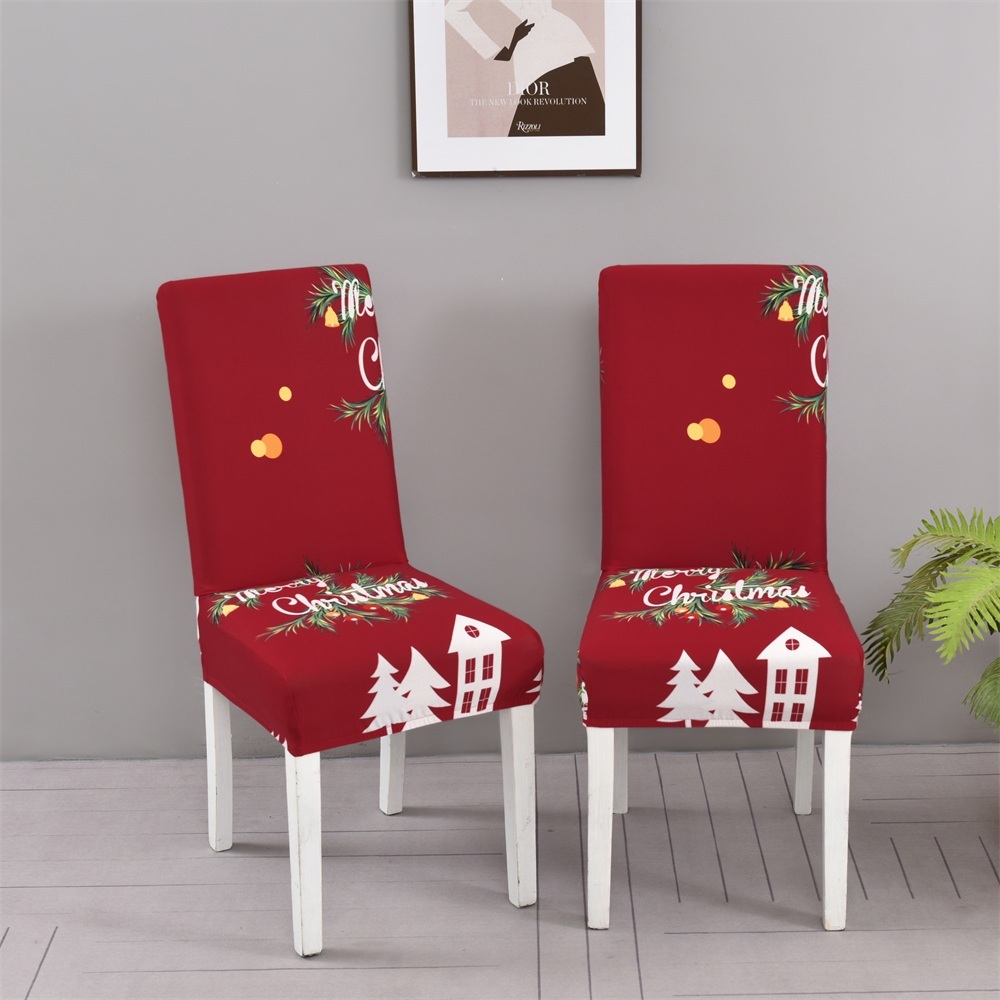 Sheleep 2/4/6 Piece Chair Cover Christmas Style High Stretch Seat Cover Dining Room Seat Slipcover