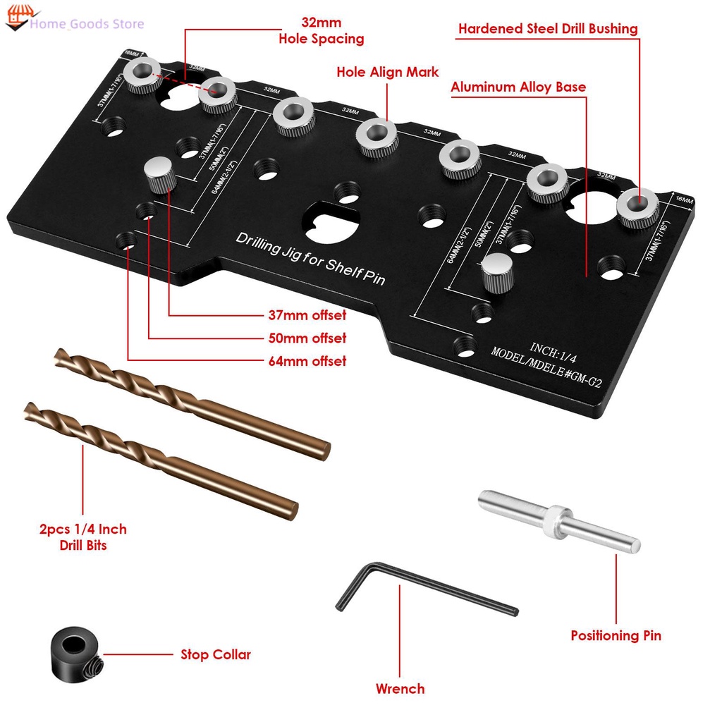 Shelf Pin Jig 1/4 Inch Aluminum Alloy Shelf Pin Drilling Guide Precise Cabinet Mounting Template Jig SHOPSKC7552