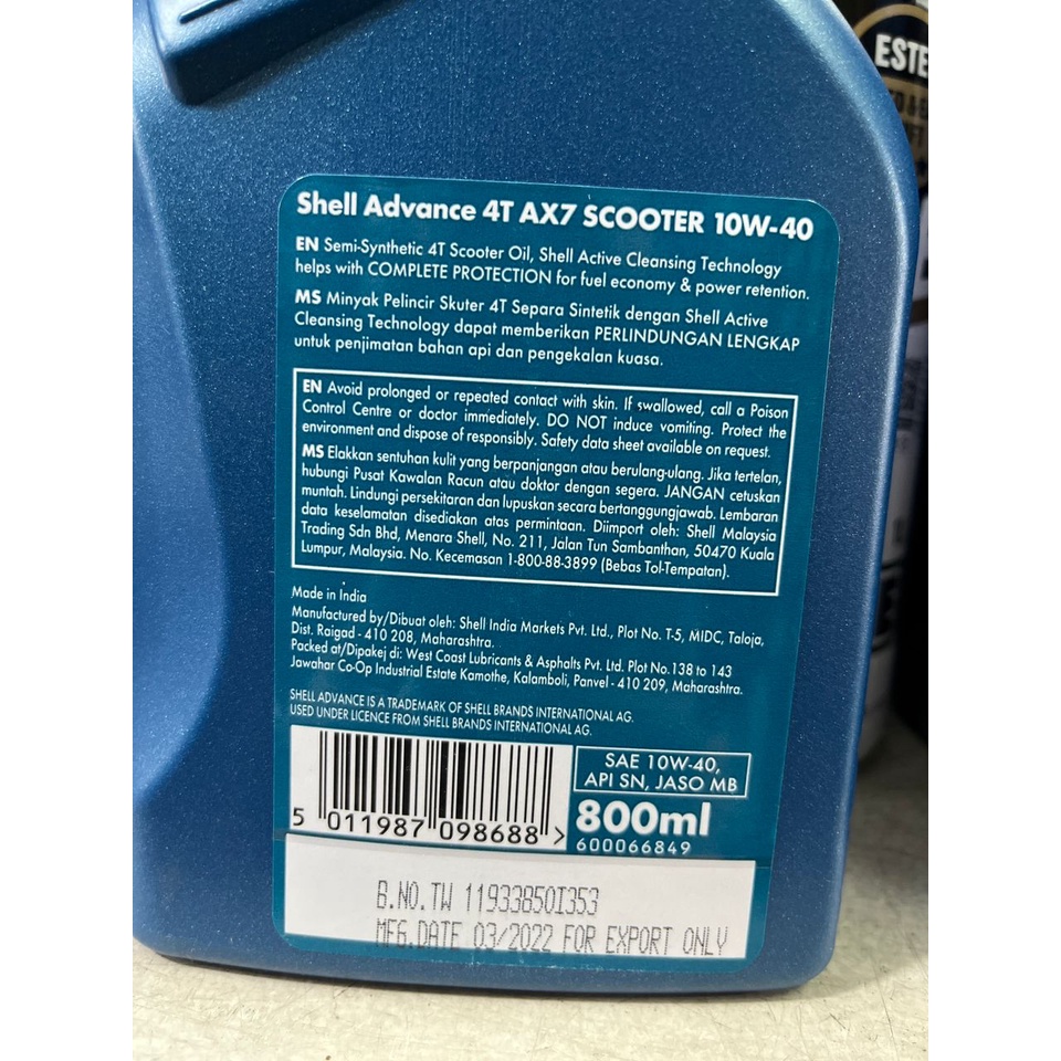SHELL ADVANCE 10W40 SCOOTER 4T AX7 SCOOTER 10W-40 0.8L 800ML SYNTHETIC BASED MINYAK HITAM SCOOTER OIL