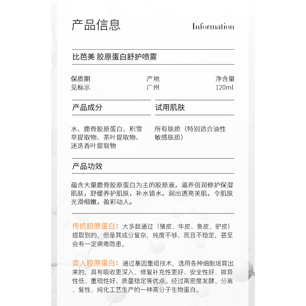 Bibamei Collagen Soothing Mist Moisturizing Cold Compress Toner Skin Repair Moisturizing 26.2.7