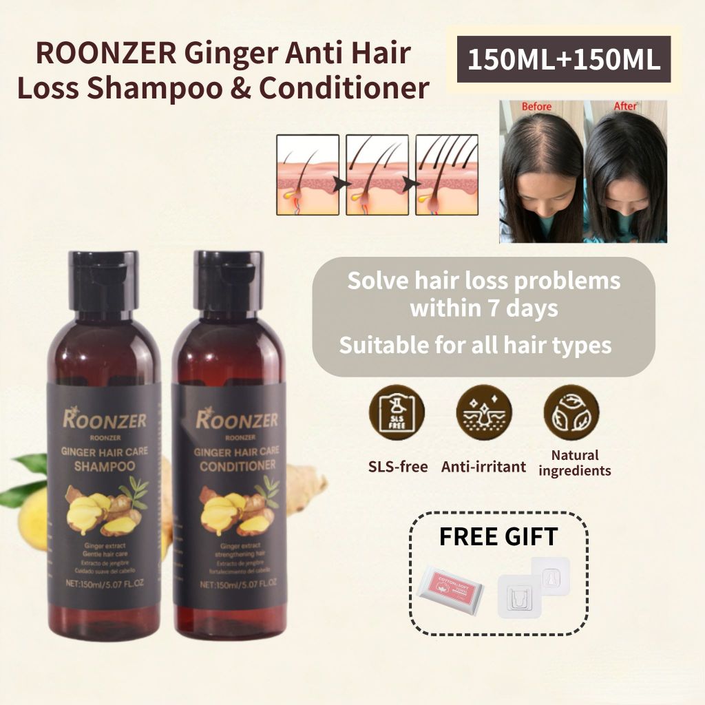ROONZER 150ML Ginger Anti Hair Loss Shampoo & Conditioner Set | Anti Hair Loss And Baldness