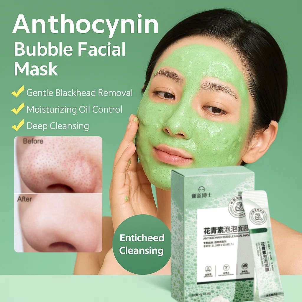 5g*12 Anthocyanin bubble facial mask blackheads removal bubble mask oil control facial Clean Pores mud mask