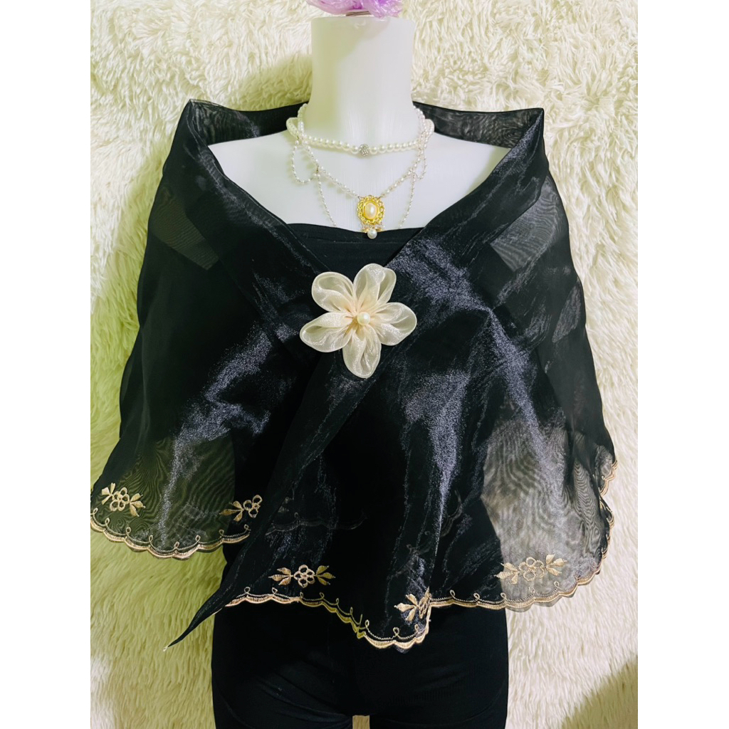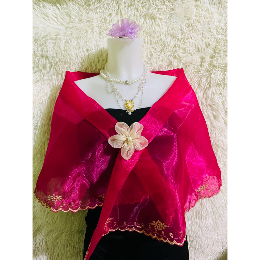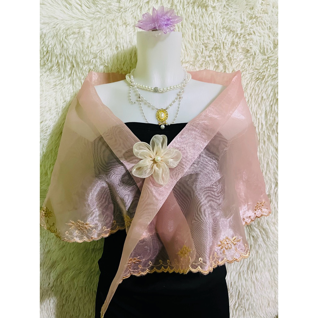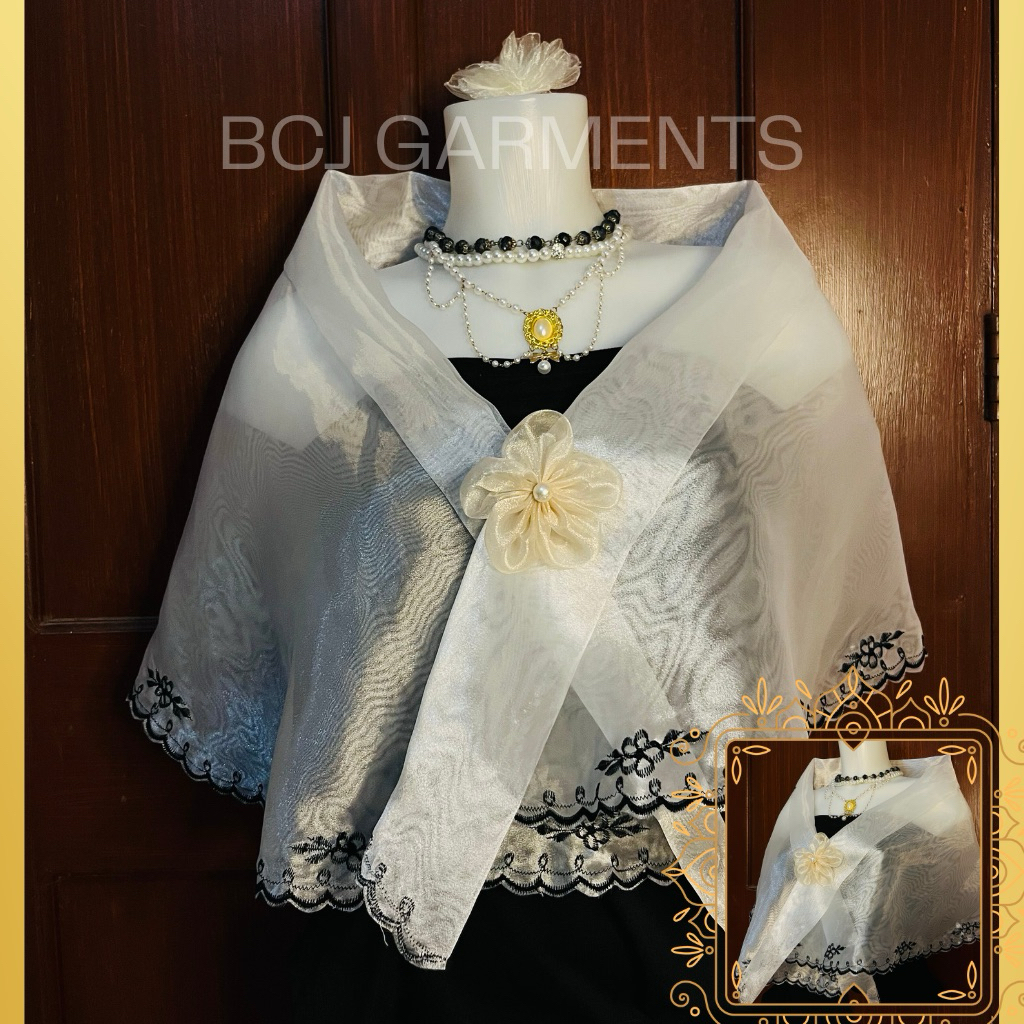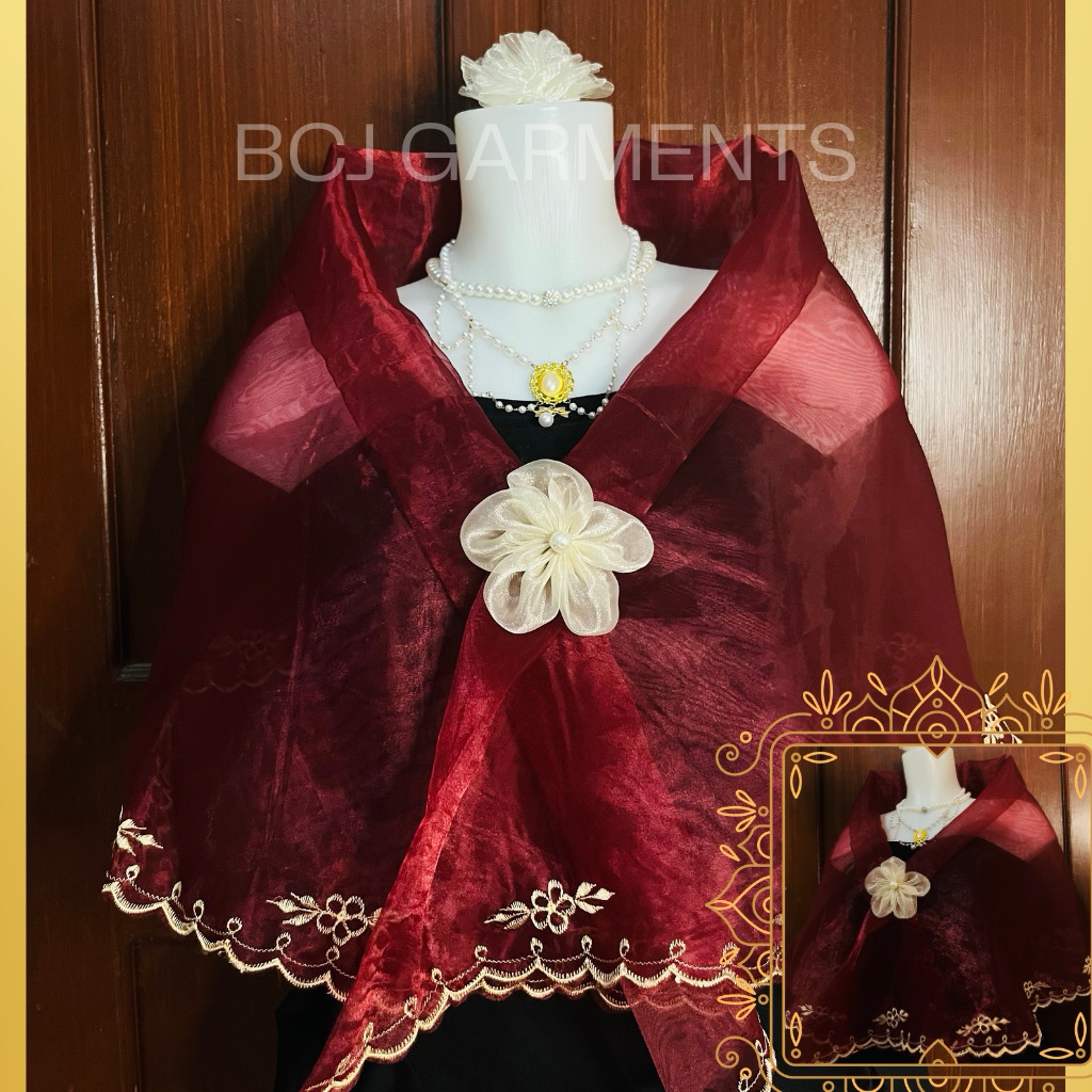 Alampay EMBROIDERED w/ Handmade Brooch flower ALAMPAY FILIPINIANA