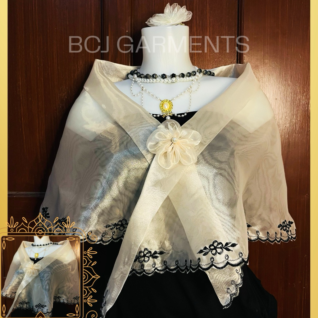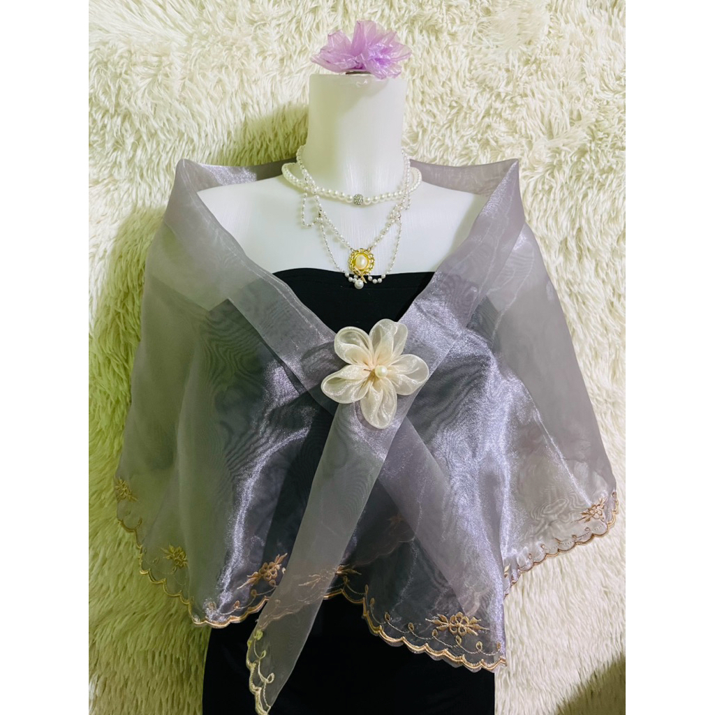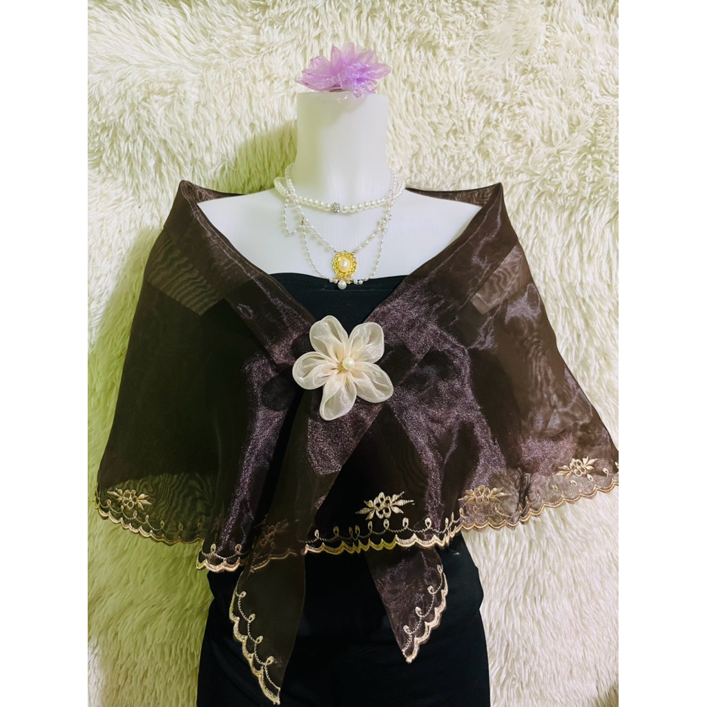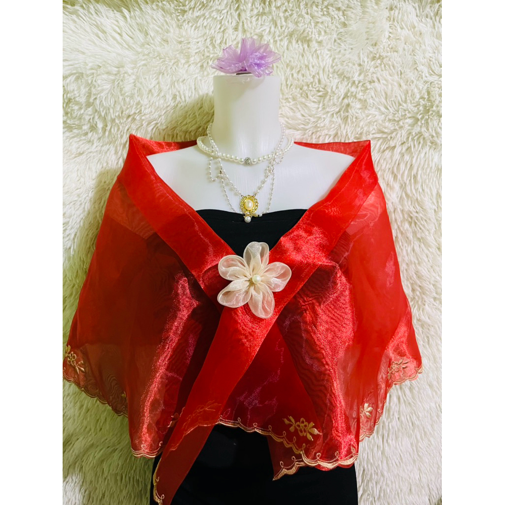 Alampay EMBROIDERED w/ Handmade Brooch flower ALAMPAY FILIPINIANA