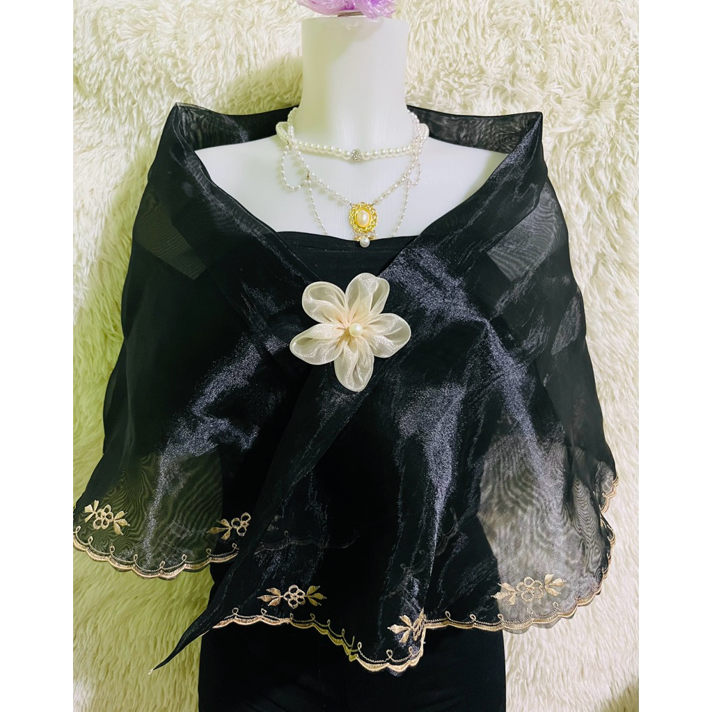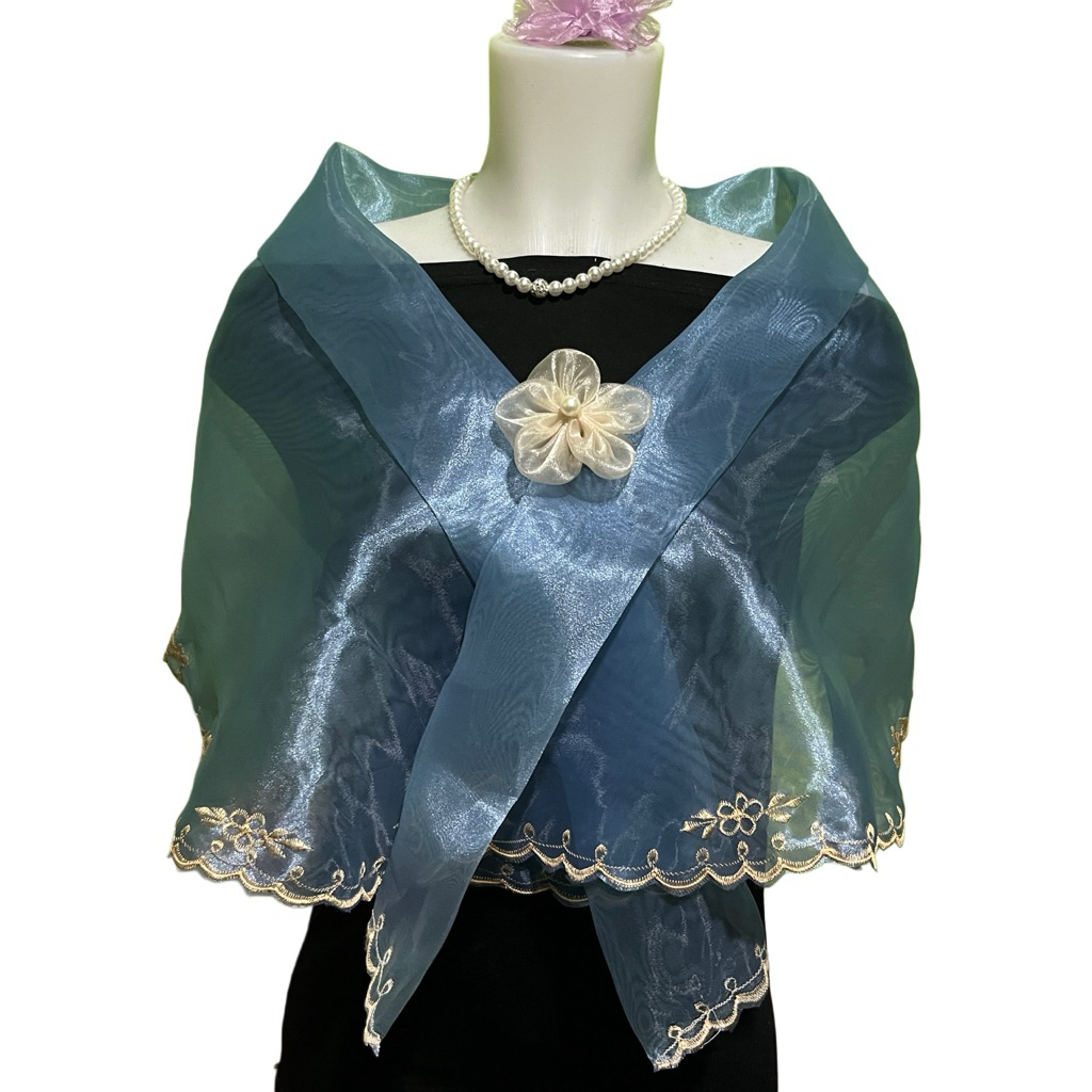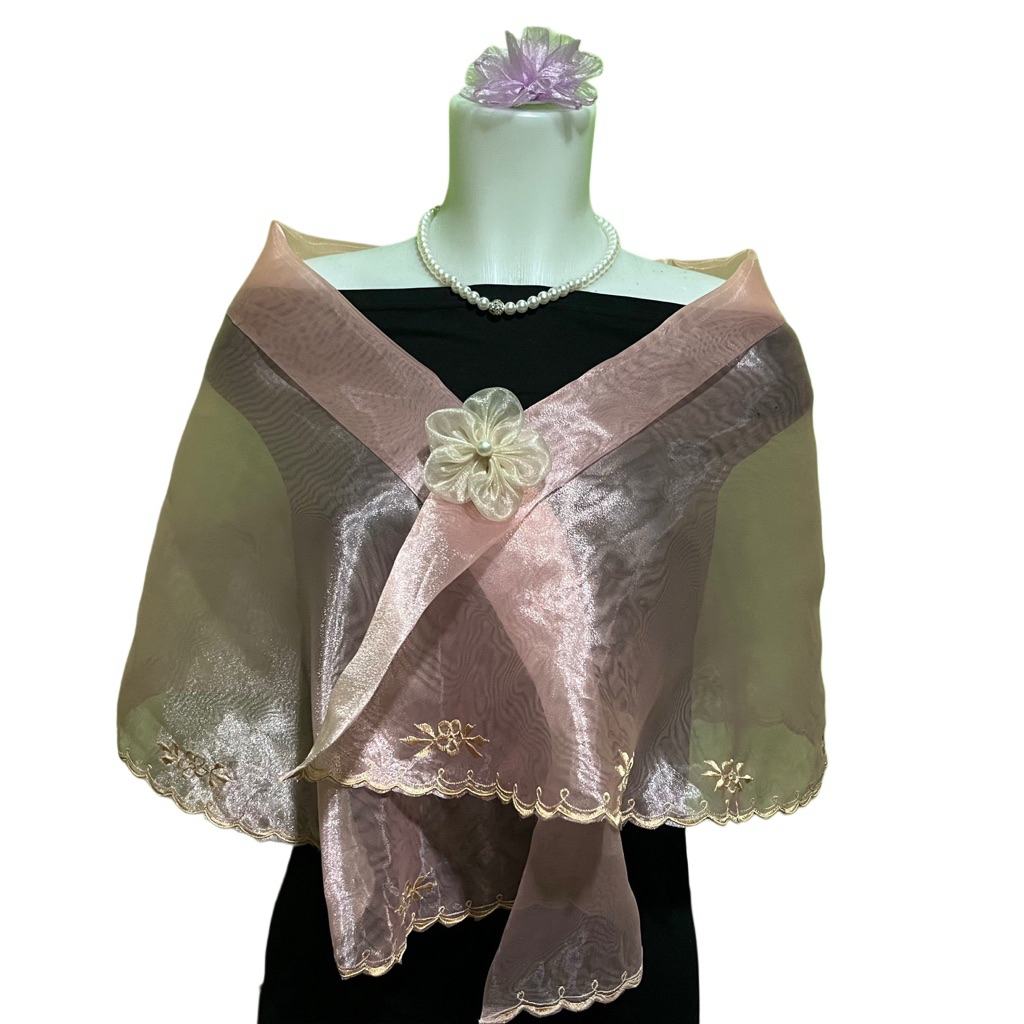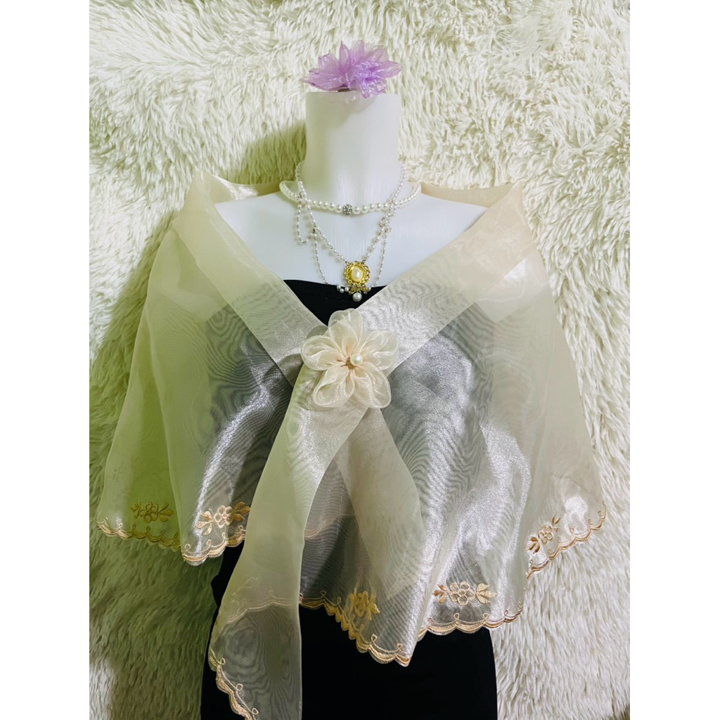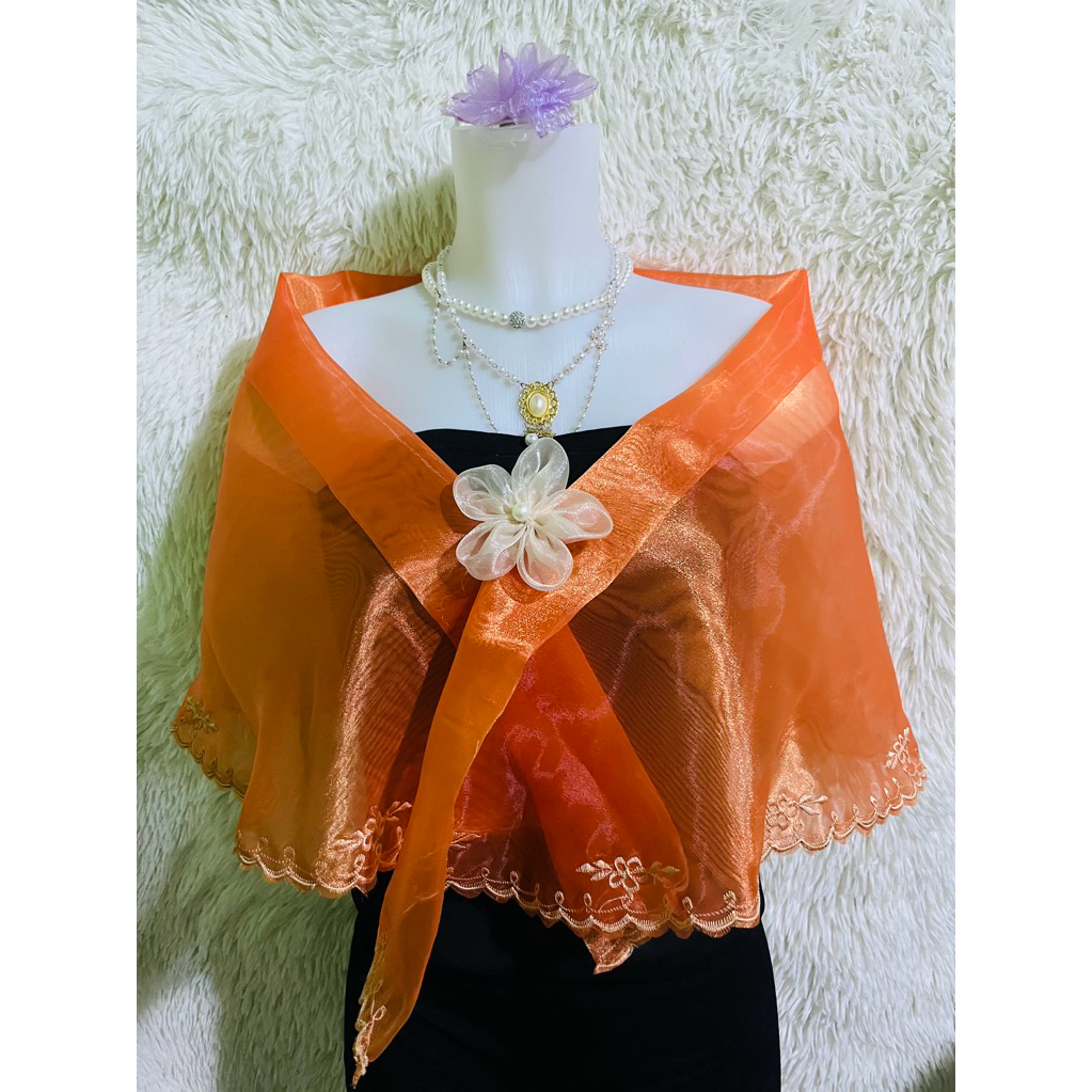 Alampay EMBROIDERED w/ Handmade Brooch flower ALAMPAY FILIPINIANA