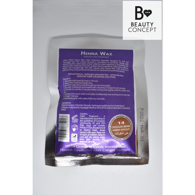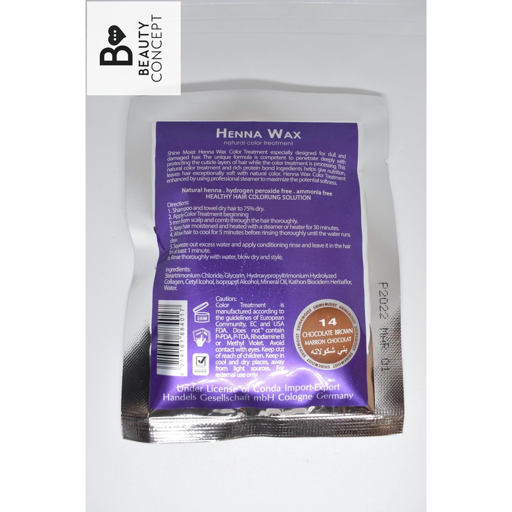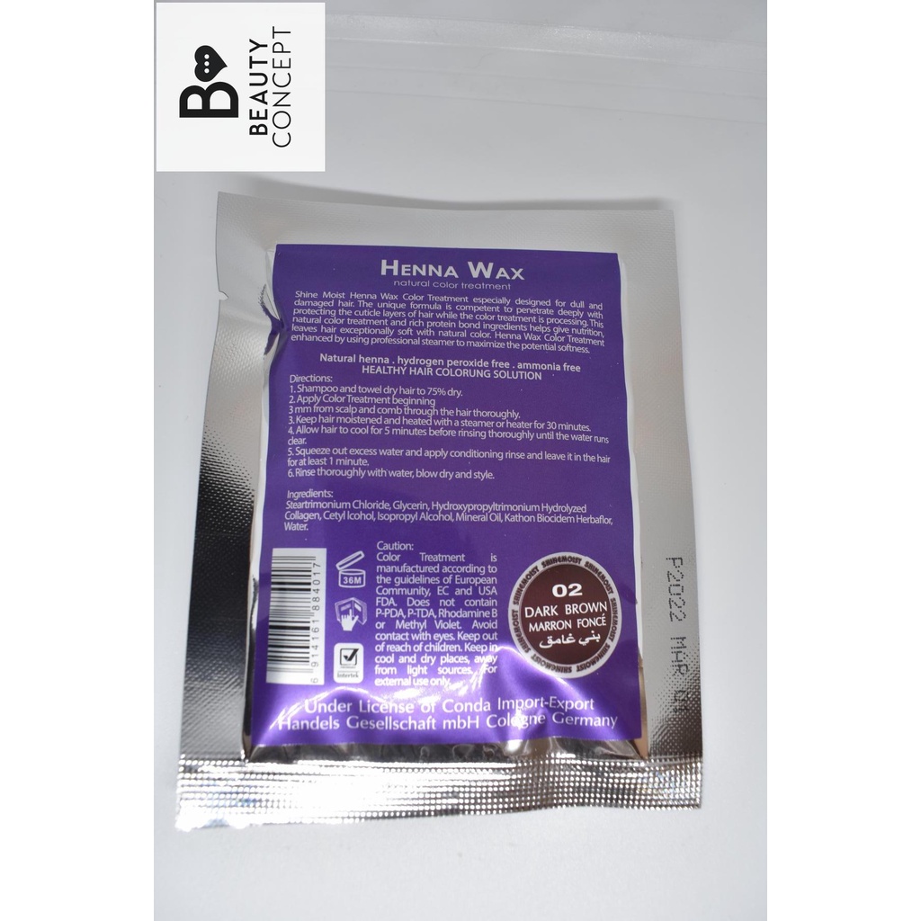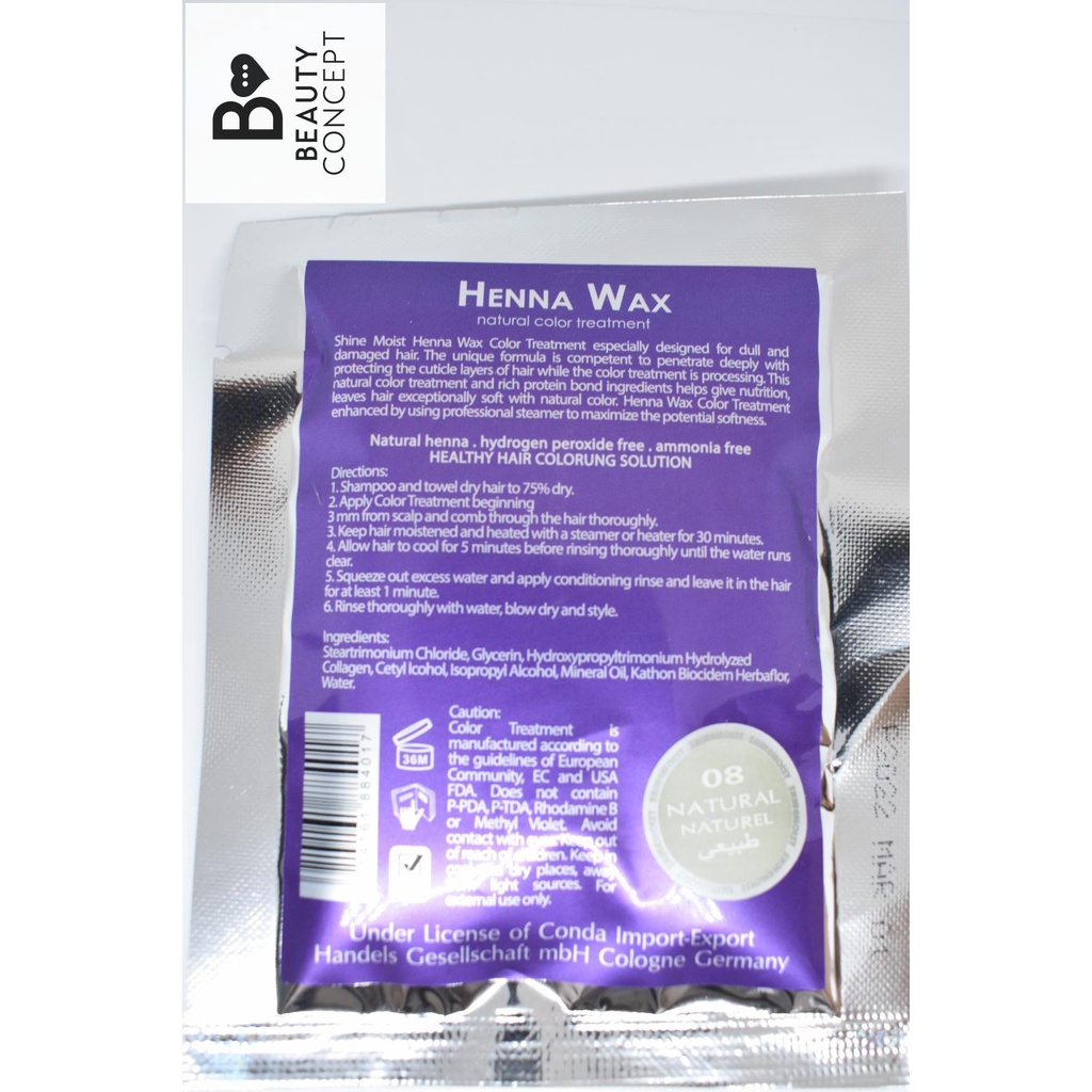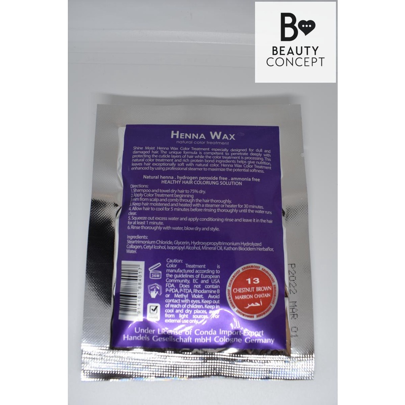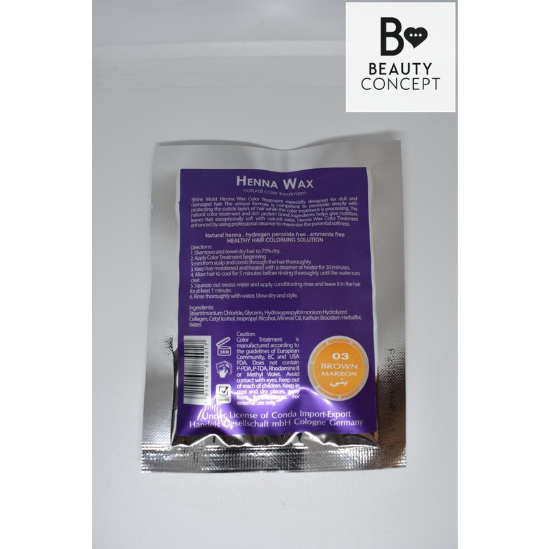 Shine Moist Henna Wax Cellophane Natural Color Treatment with Hot Oil 40 ML