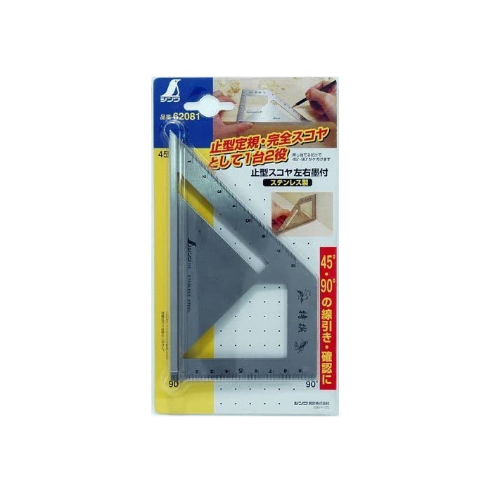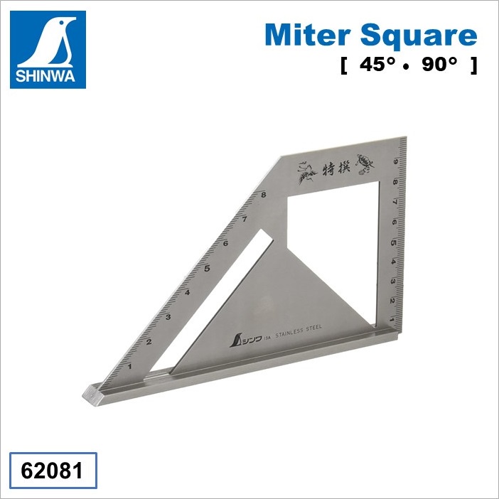 Shinwa Stainless Steel Miter Square, Miter Rule 45 Degree 90 Degree, Layout - 62081