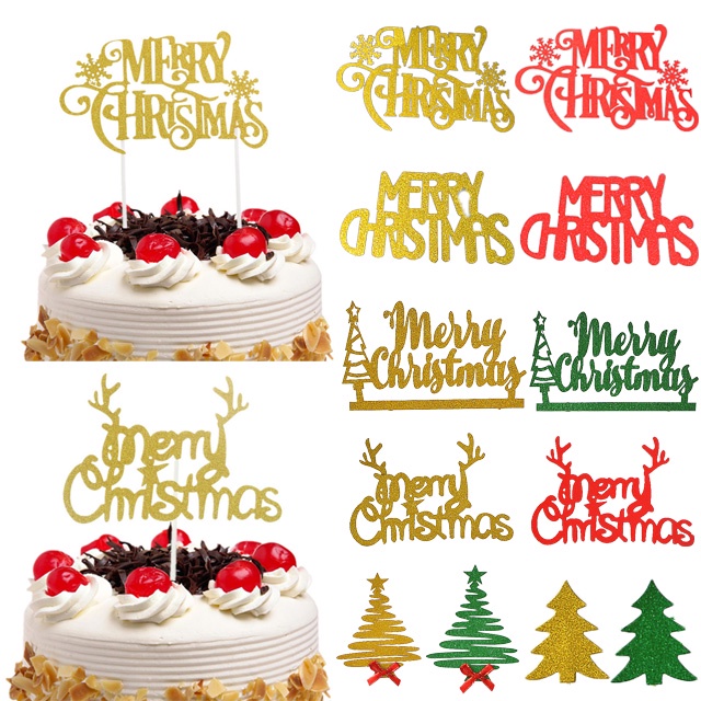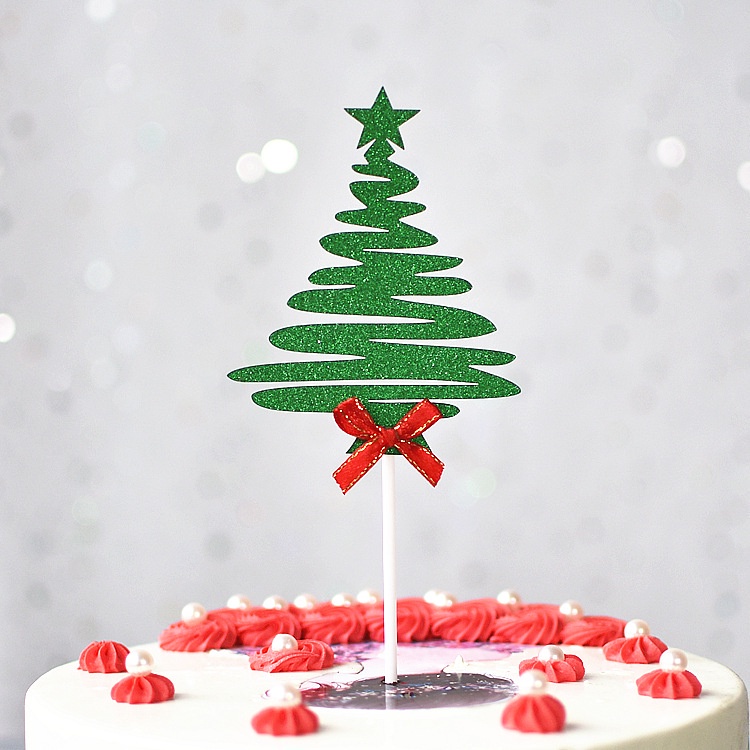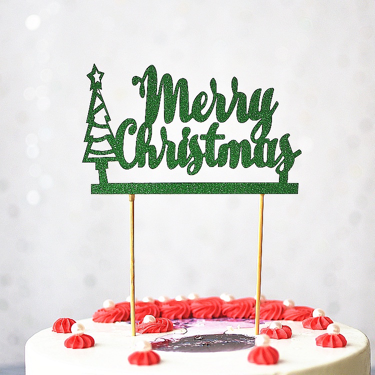 Shiny Christmas Cupcake Topper Flags Christmas Tree Flags