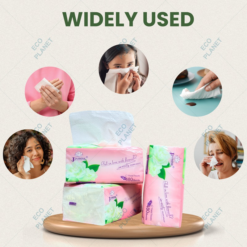 Shipout 24H 480sheet Organic green tea Facial Tissue Paper 4 ply 8 Packs Tissue Reveuse Pink Tissue