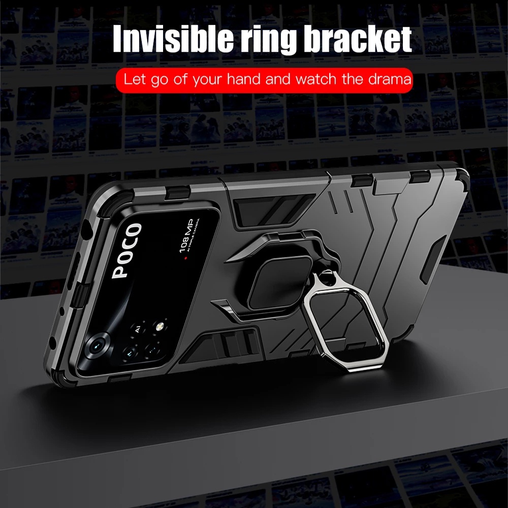 Shockproof Armor Case for POCO X4 Pro 5G X4 GT X3 NFC F3 GT Ring Stand Phone Back Cover for Xiaomi POCO M3 M4 Pro 5G